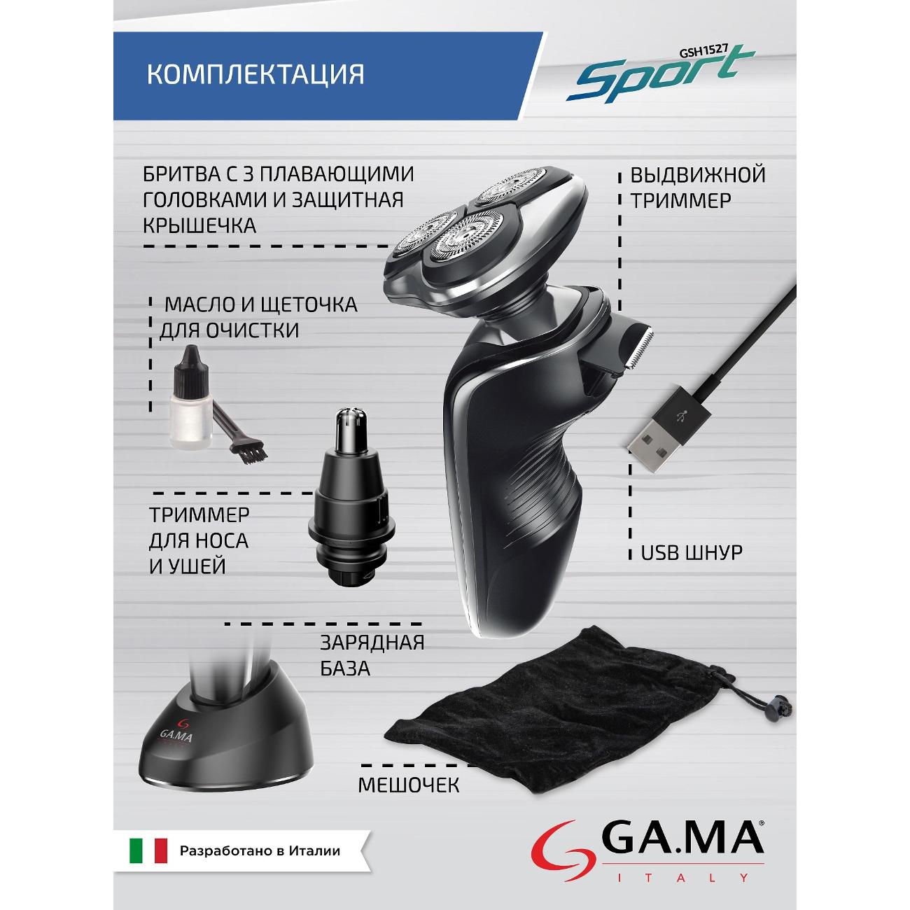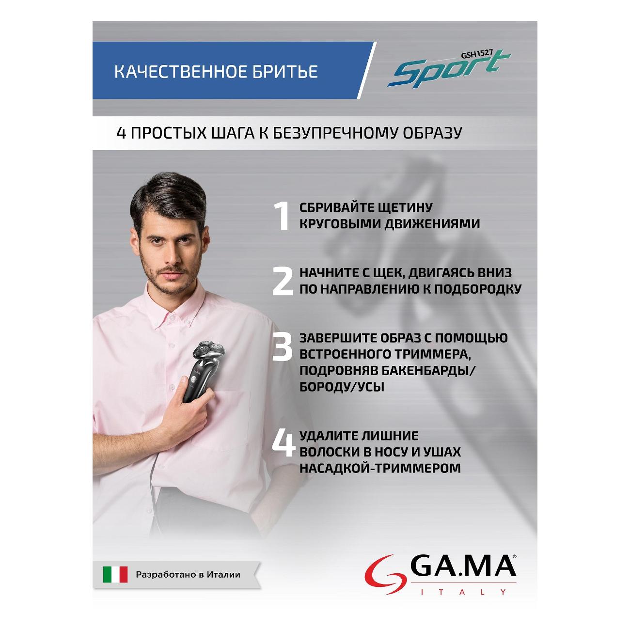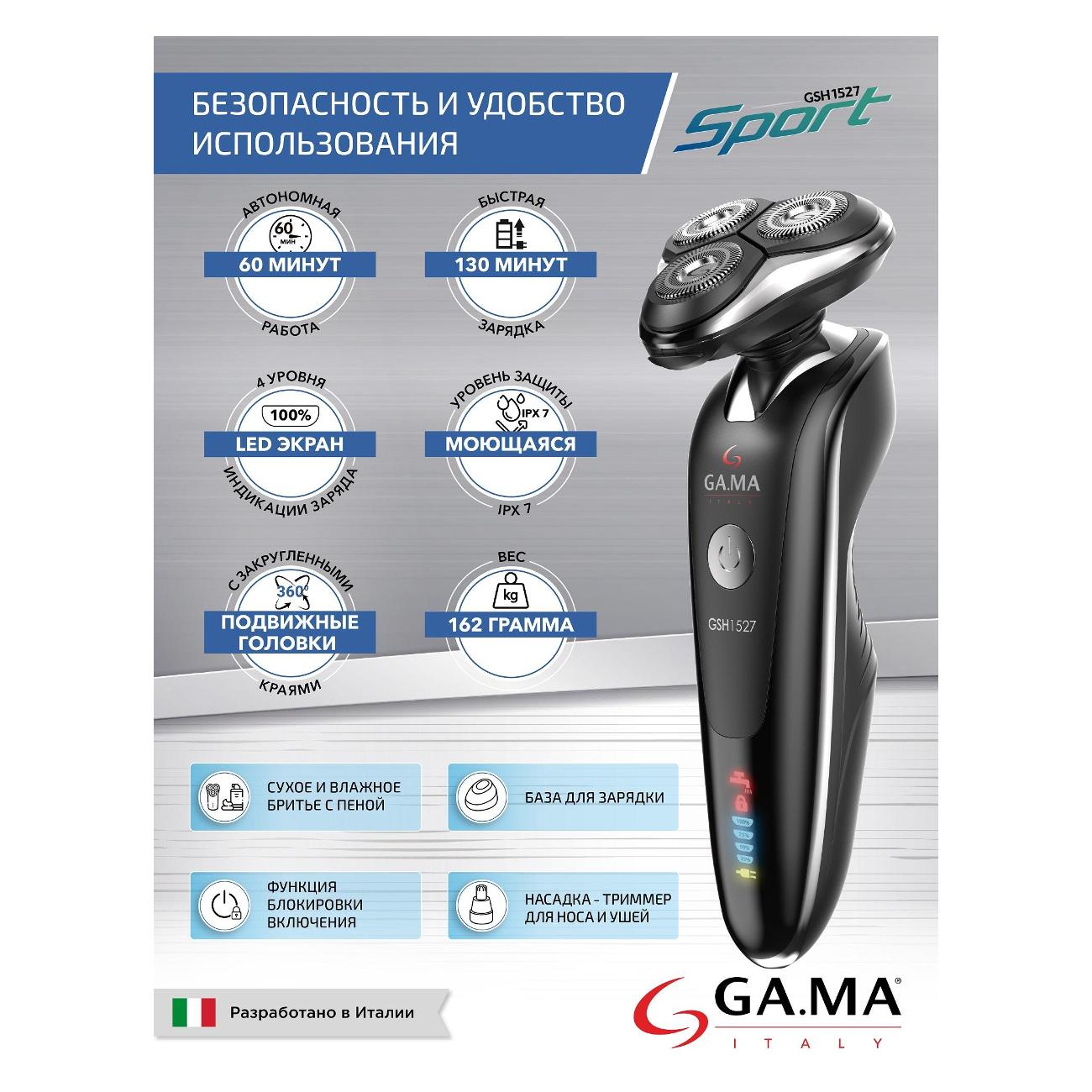 Вы можете купить Электробритва GA.MA GSH1527 SPORT - HF в магазинах М.Видео по доступной цене. Электробритва GA.MA GSH1527 SPORT - HF: подробное описание, фото и отзывы реальных покупателей, характеристики, возможность скачать инструкции и подобрать аксессуары.