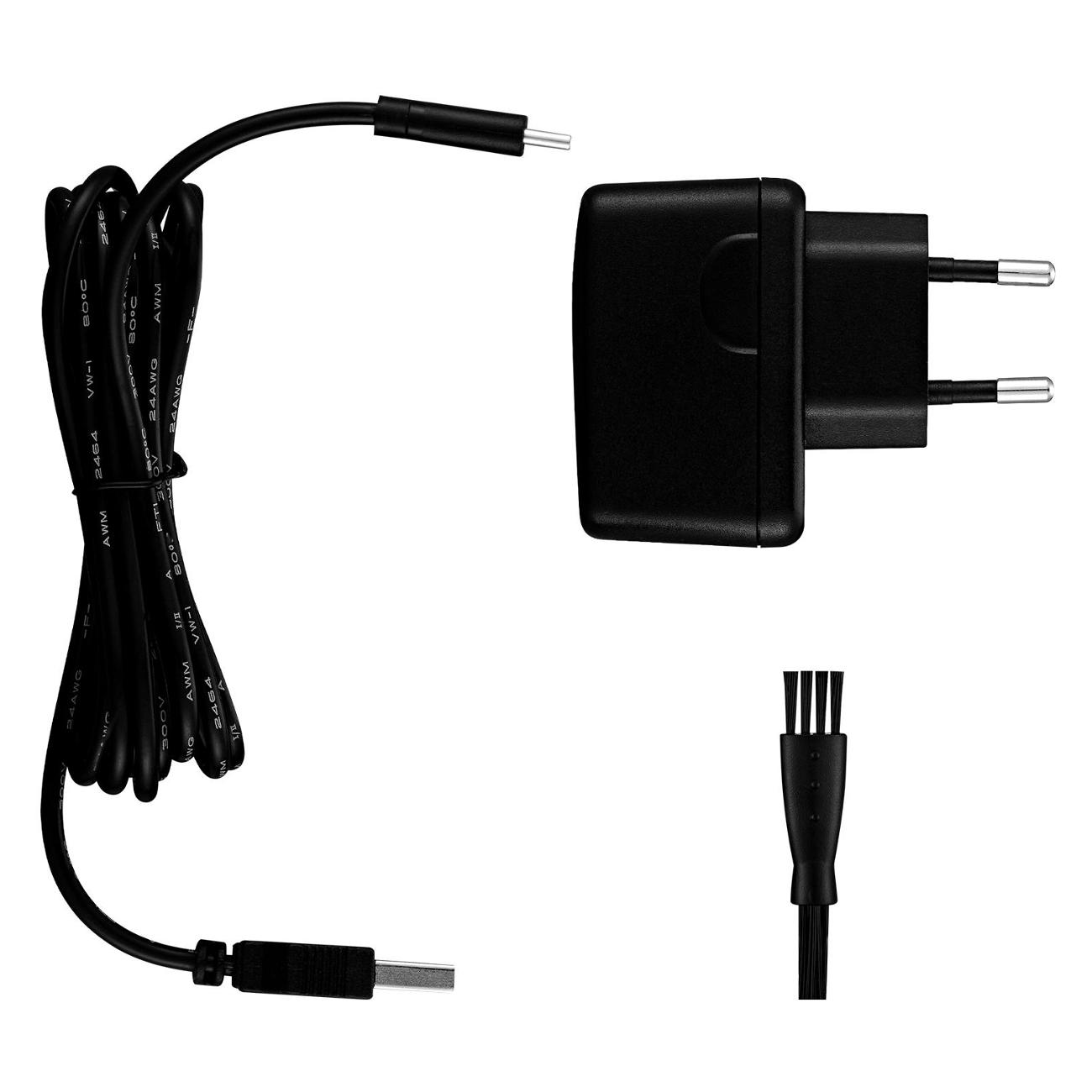 Выдвижной триммер помогает подравнивать усы, бороду и бакенбарды. Диаметр каждой бреющей части составляет 20 мм. Световые индикаторы подскажут, когда пора зарядить прибор. Длина провода составляет 1,8 м, вес бритвы — 140 г.