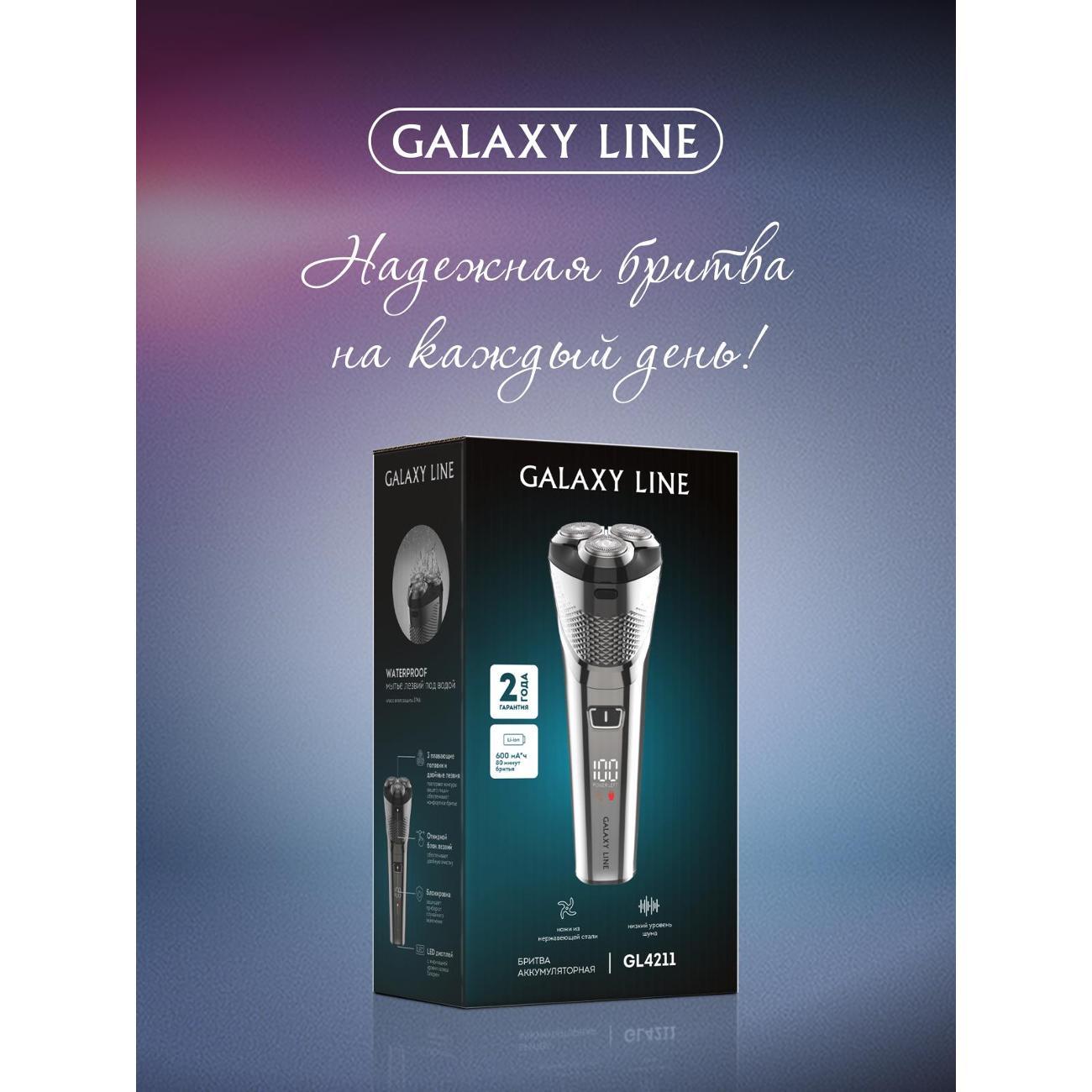 Вы можете купить Электробритва мужская Galaxy LINE GL 4211 в магазинах М.Видео по доступной цене. Электробритва мужская Galaxy LINE GL 4211: подробное описание, фото и отзывы реальных покупателей, характеристики, возможность скачать инструкции и подобрать аксессуары.