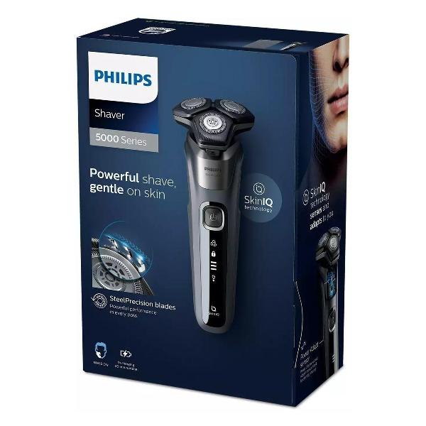 Электробритва Philips S5587/10 из серии Shaver Series 5000 подходит для влажного и сухого бритья. Прибором можно пользоваться в душе. В модели используется роторная технологии, предусмотрены три бритвенные головки, повторяющие контуры лица, и встроенный триммер. После использования ножи можно промыть под струей воды.