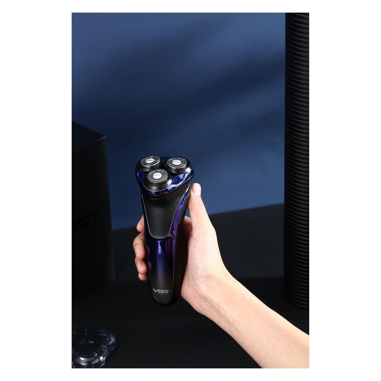 Электробритва VGR V-306 в корпусе сине-черной расцветки предназначена для бритья сухой и увлажненной кожи. Модель оснащена встроенным триммером. Предусмотрены три бреющих элемента, которые повторяют естественные изгибы лица в процессе бритья. Лезвия можно промывать под струей проточной воды.