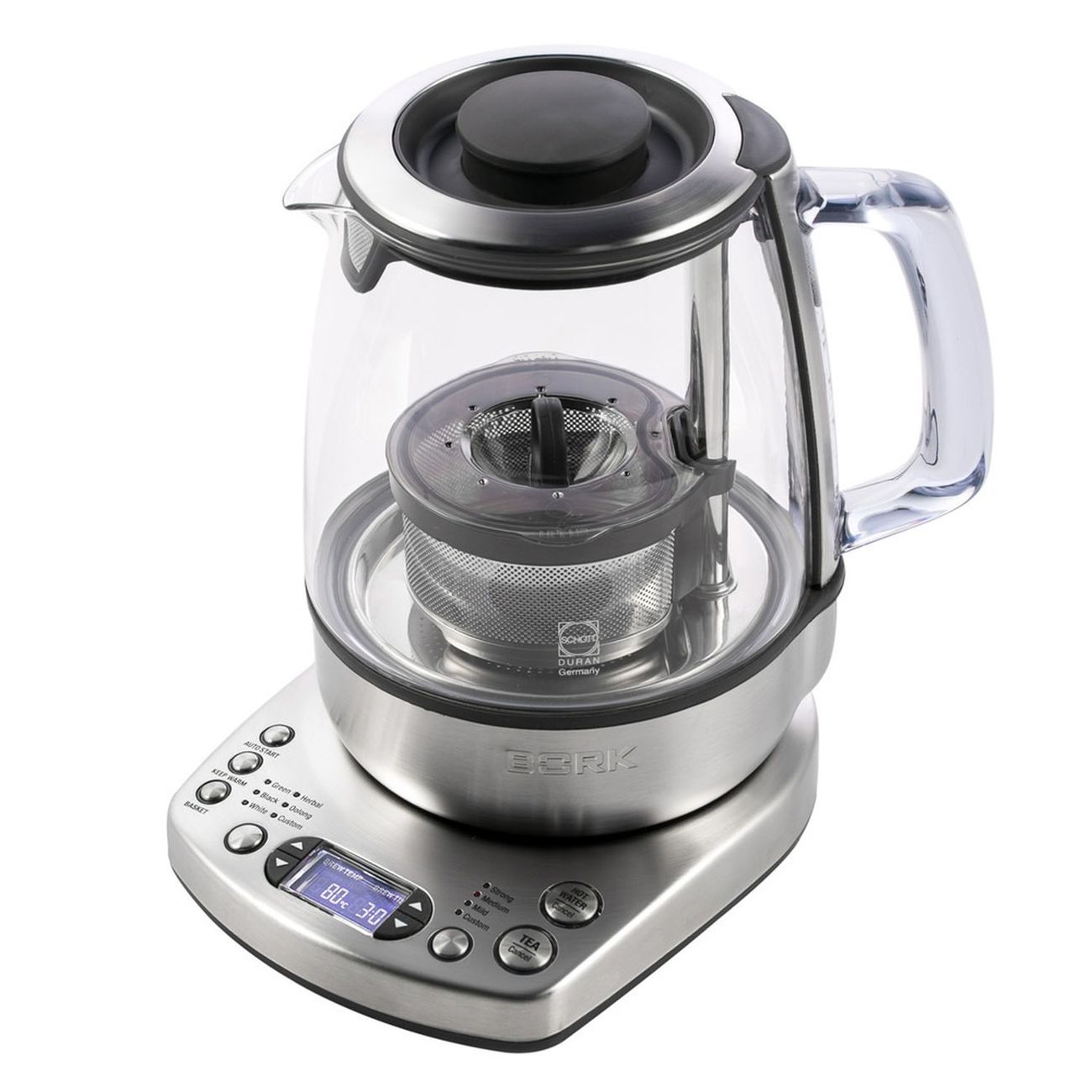 Умный электрочайник Bork K810 не только вскипятит воду, но и приготовит чай. Для этого он оборудован функцией автоматического опускания корзины. Устройство элегантно выглядит благодаря корпусу, изготовленному из нержавеющей стали и прозрачного термостойкого стекла, и займёт достойное место на вашей кухне.