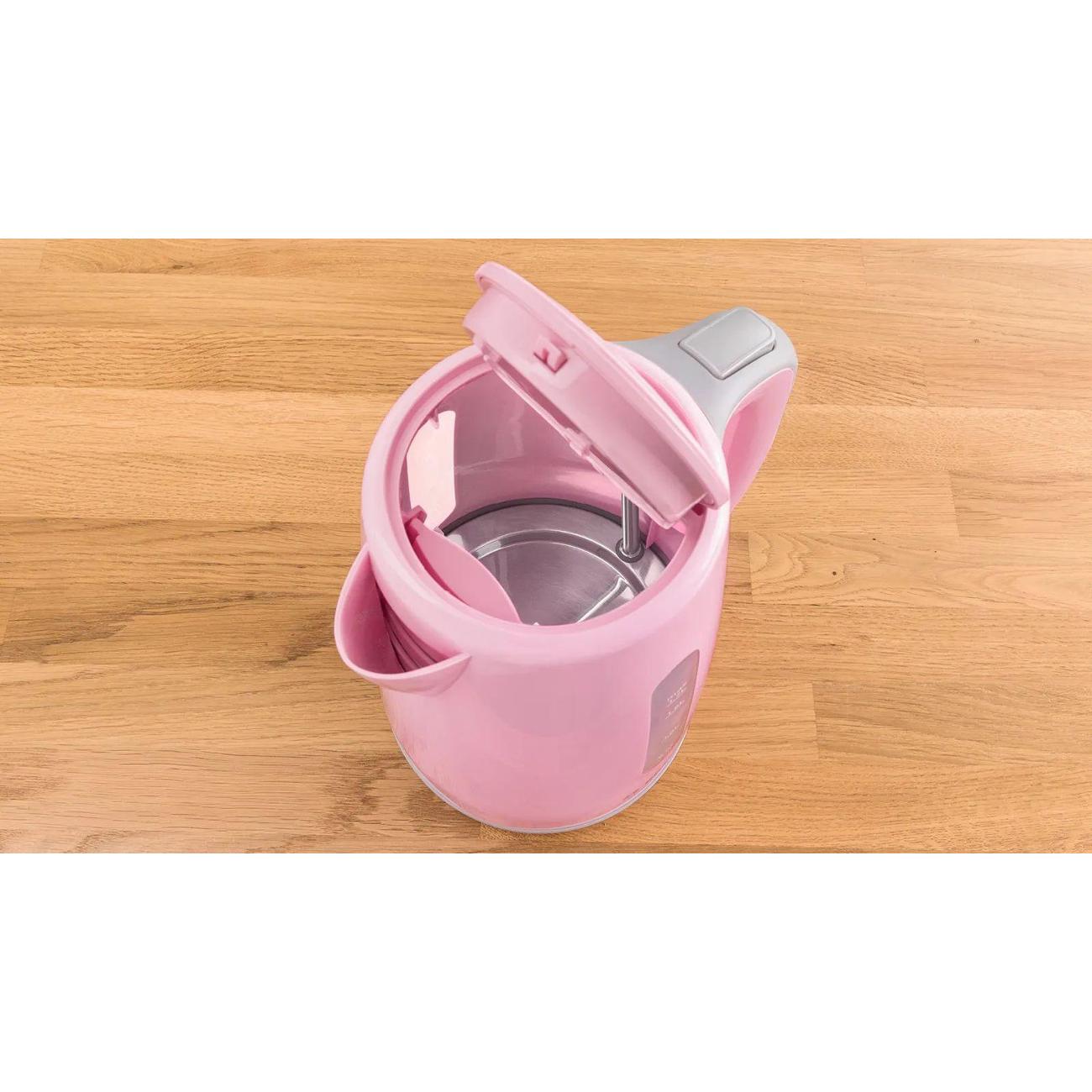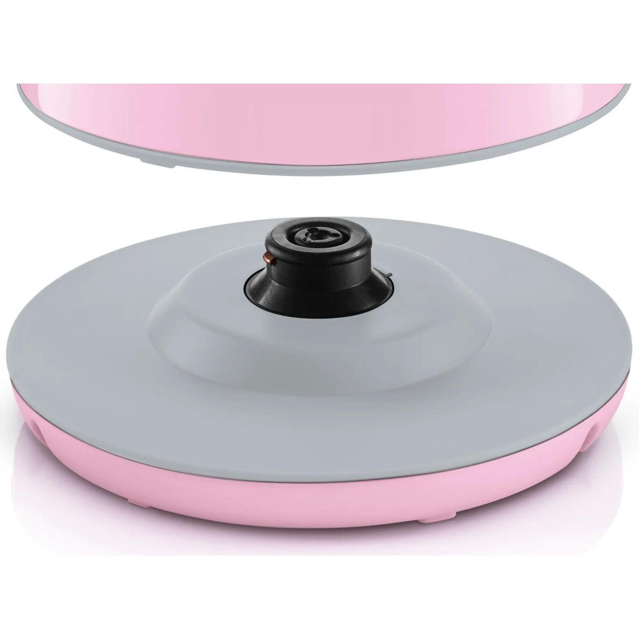 Корпус устанавливается на цоколь с антискользящим покрытием, что обеспечивает устойчивость на любой поверхности. Устройство оснащено защитой от перегрева. Чайник автоматически отключается, если не заполнен водой, при закипании и при снятии с цоколя. Габариты модели — 24х18,5х18 см. Вес — 1,093 кг.