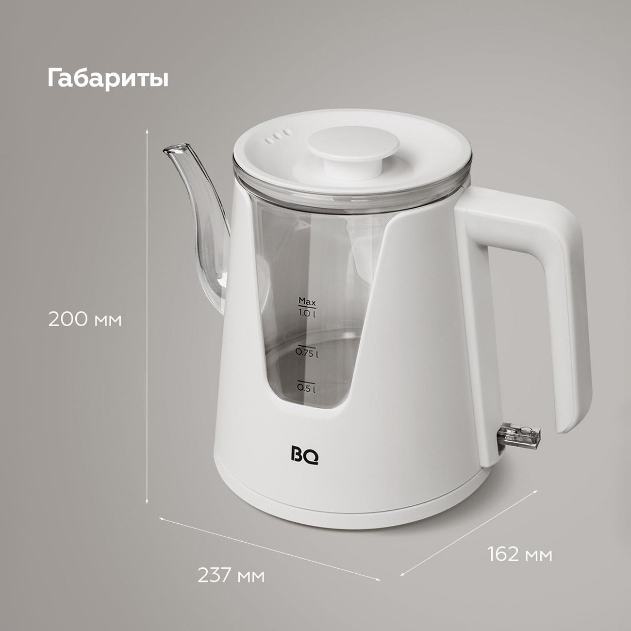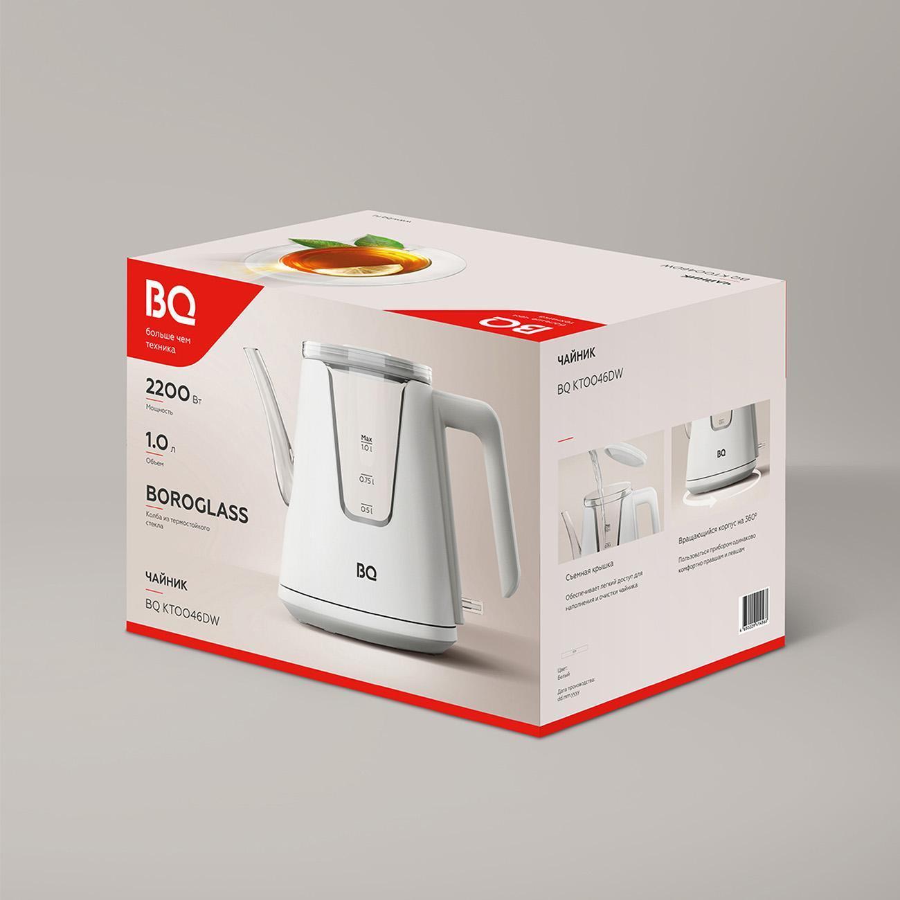 Электрочайник BQ KT0046DW — компактная модель объемом один литр с закрытым дисковым нагревателем.
