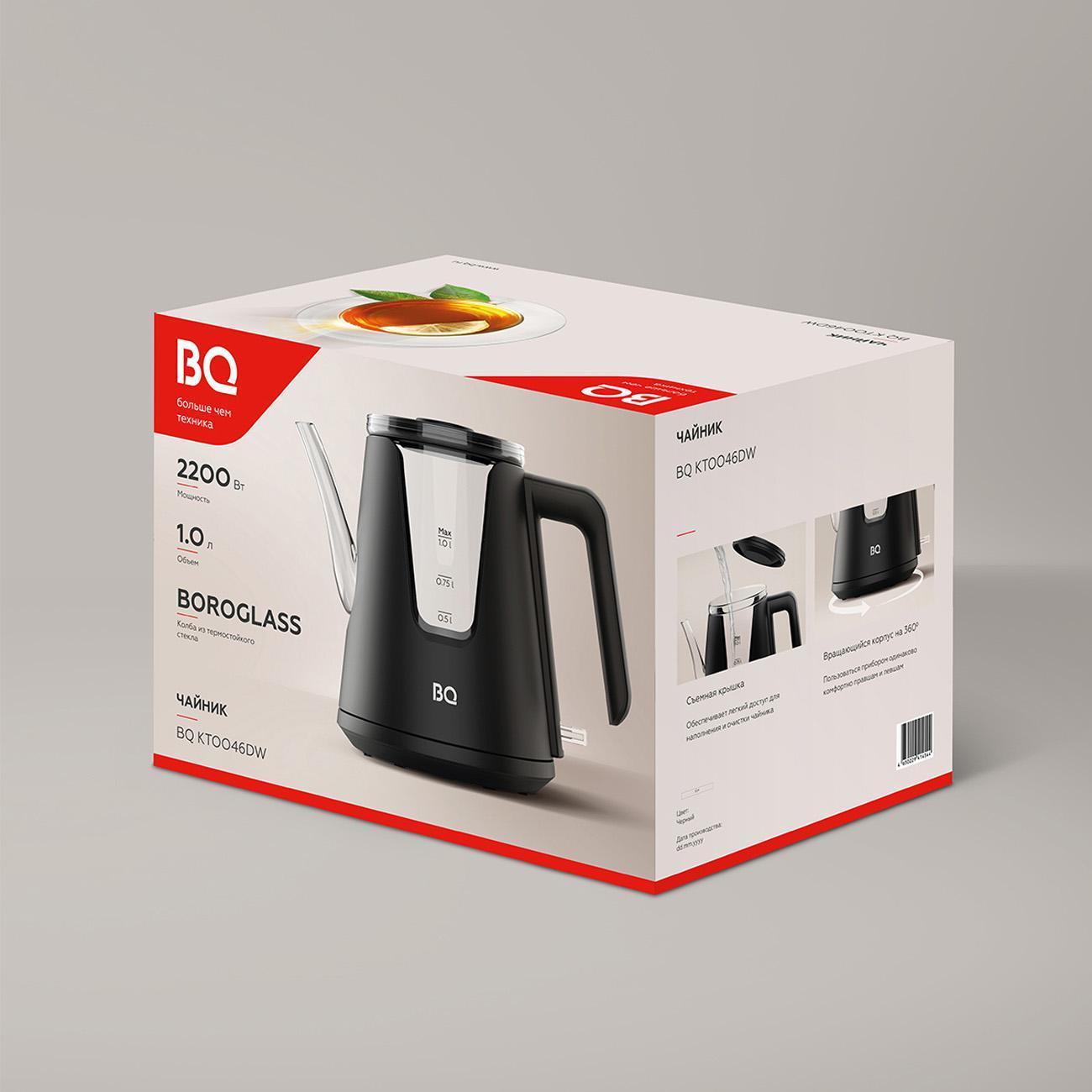 Электрочайник BQ KT0046DW — компактная модель объемом один литр с закрытым дисковым нагревателем.