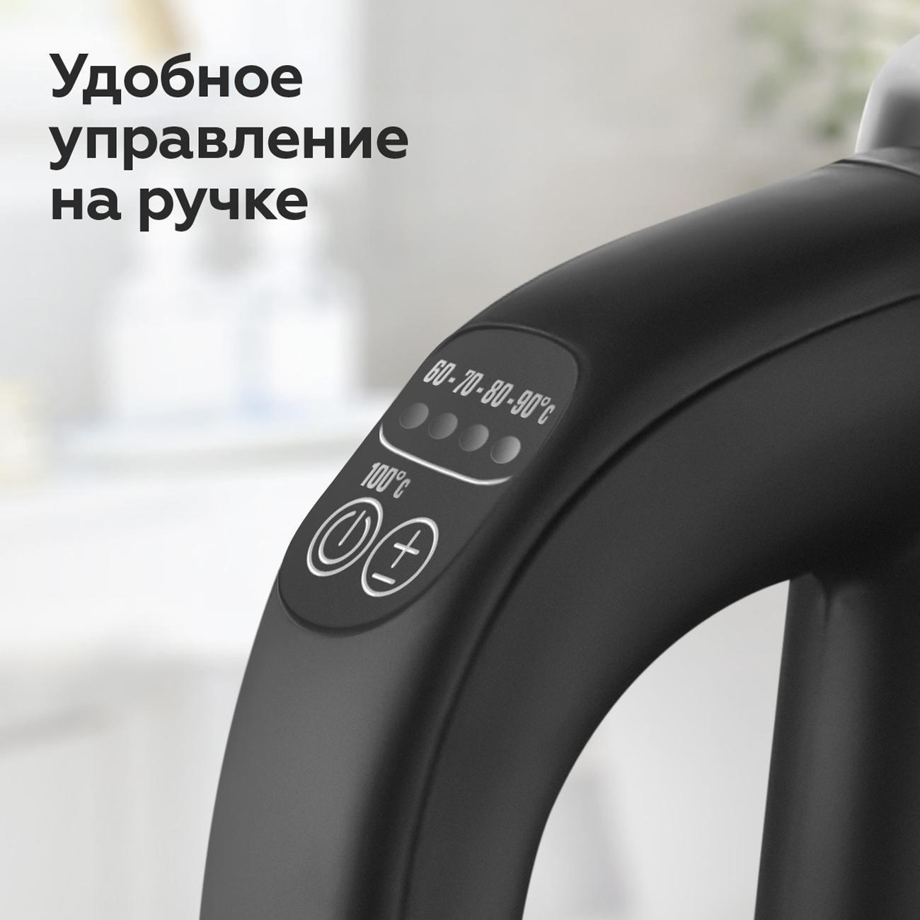 Наличие пяти предустановленных температурных режимов позволяет нагревать воду оптимально для зеленого или черного чая, кофе или детского питания. Мощность 2200 Вт обеспечивает быстрое достижение заданного значения.