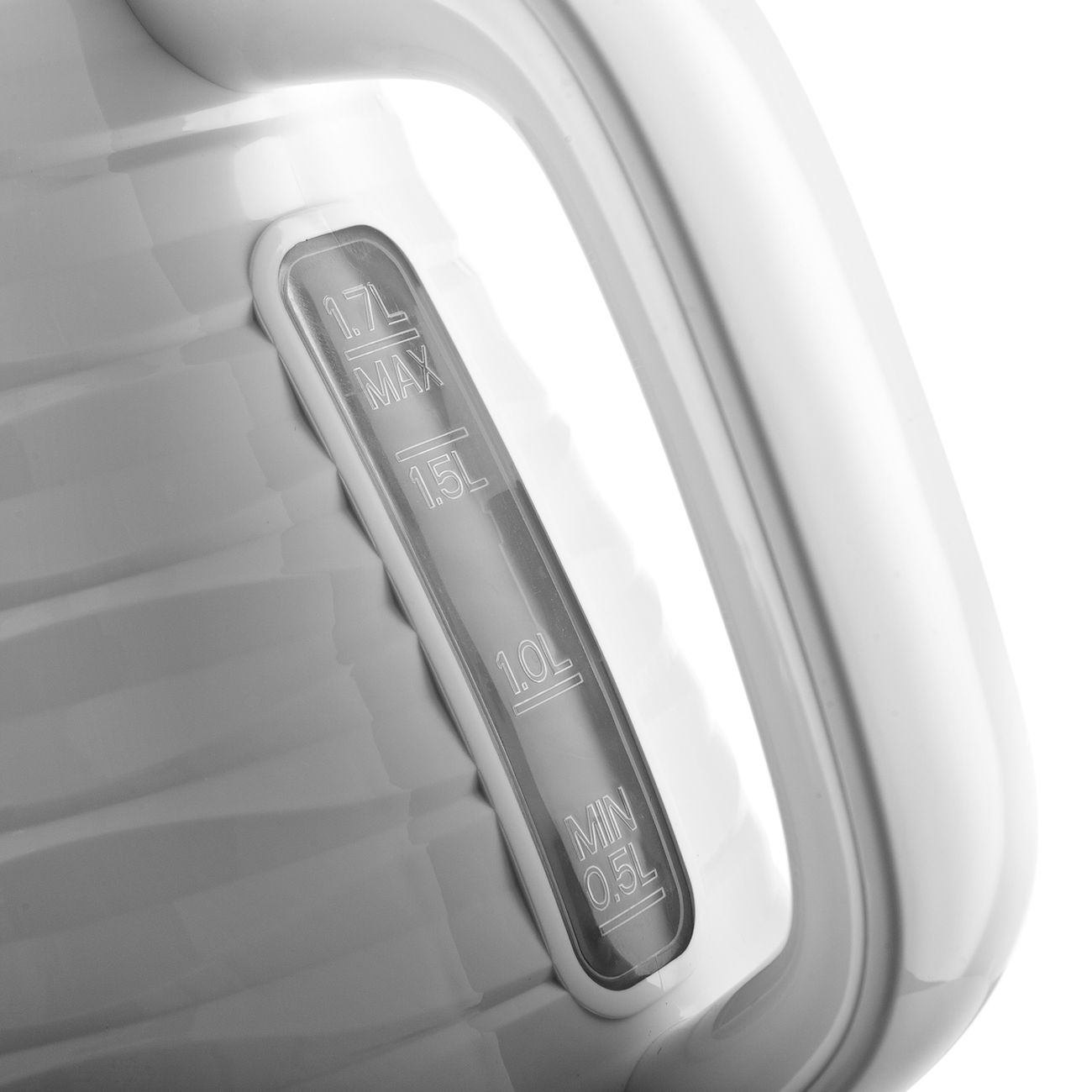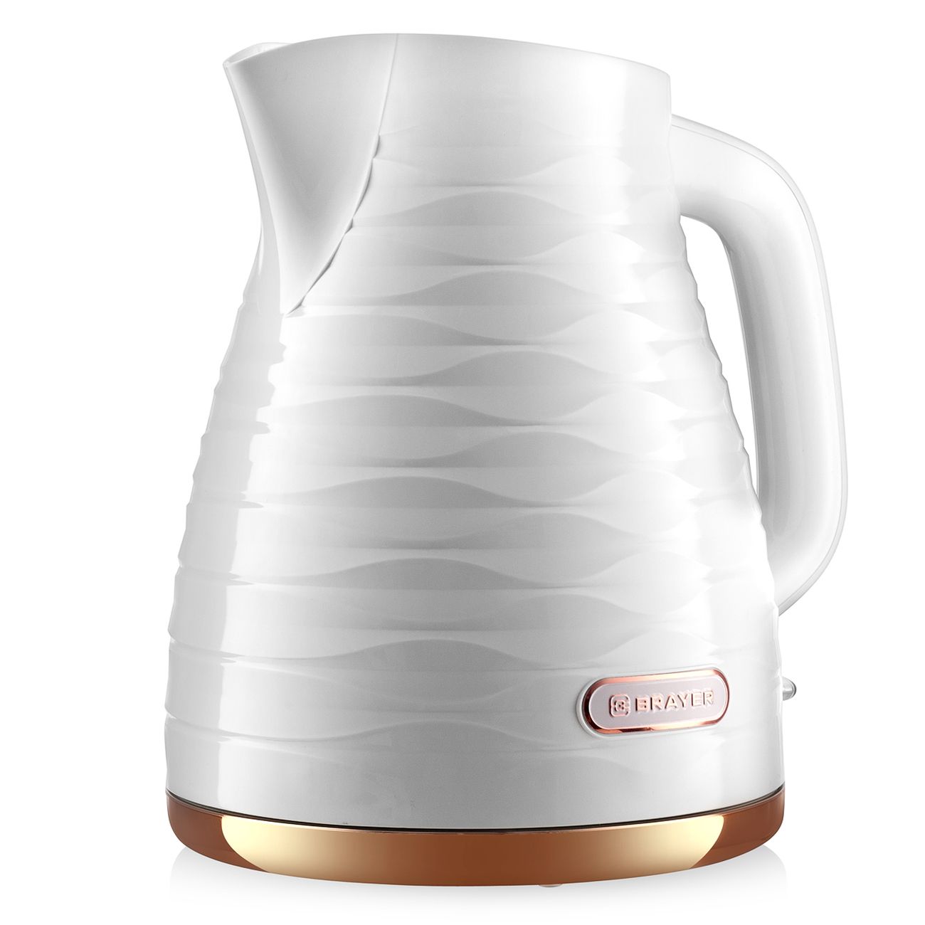 Электрочайник Brayer BR1057WH объемом 1,7 л выполнен из термостойкого пластика, на корпусе предусмотрена мерная шкала для точного отмеривания количества воды. Широкое горлышко облегчает наполнение чайника, управление осуществляется при помощи нажатия одной кнопки. Прибор автоматически отключается при закипании и отсутствии воды.