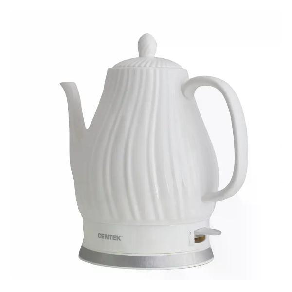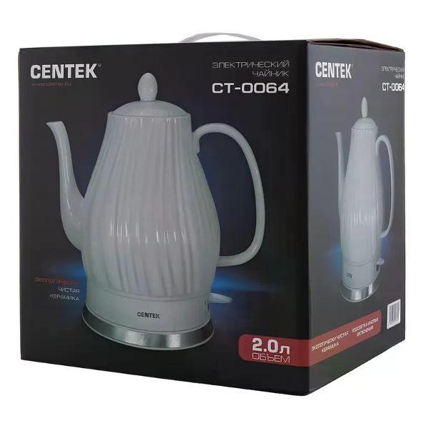 Элегантный электрический чайник с керамическим корпусом сочетает в себе эстетичный дизайн и продуманную функциональность: внутренняя поверхность не влияет на вкус воды, легко очищается от накипи, а равномерный нагрев обеспечивает быстрое закипание при экономном энергопотреблении. Продуманная система безопасности включает автоматическое отключение при отсутствии жидкости и защиту от перегрева, что делает устройство безопасным в эксплуатации. Эргономичная ручка и удобный носик упрощают наливание, а стильное покрытие гармонично впишется в интерьер современной кухни, придавая ей уют и изысканность.: Чайник Centek CT-0064 – качественное и надежное изделие объемом 2 л и мощностью 2150 Вт, которое кипятит воду за несколько минут. Скрытый нагревательный элемент дает ряд весомых преимуществ перед моделями с открытой спиралью. К ним относятся: увеличенная теплоотдача, более быстрый нагрев воды и меньшая склонность к образованию накипи. Корпус и крышка выполнены из супербелой керамики, подставка с отделкой из нержавеющей стали. Удобная керамическая ручка чайника не перегревается и не скользит в ладони во время использования. Сливной носик обеспечивает удобное переливание воды. Плотно прилегающая к корпусу крышка обеспечивает герметичность при закипании. Керамический корпус чайника надолго удерживает тепло и прост в уходе. Благодаря автоматическому отключению чайника вам не нужно находиться рядом с прибором во время его работы. Защита включения без воды предупреждает поломку. Стильный дизайн. Подсветка на кнопке включения. Вращение базы на 360° и отсек для хранения шнура.Объем: 2.0 л; Мощность: 2150 Вт; Внутренняя LED-подсветка: Нет; Длина кабеля: 75 см; Материал корпуса: Керамика; Особенности: LED-индикаторы работы, Закрытый нагревательный элемент, Защита от включения без воды, Защита от перегрева; Гарантия: 1 год; Двойные стенки: Нет