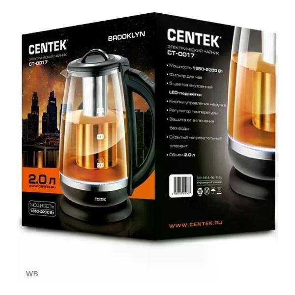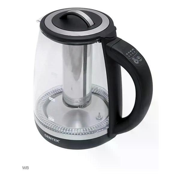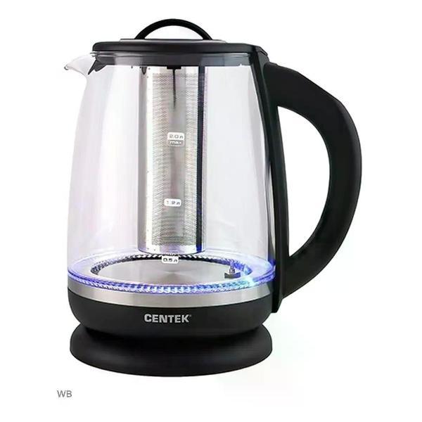 Чайник электрический стеклянный CENTEK. Объем 2,0 л. Материал - Стекло. Цвет черный. Особенности чайника -Закрытый нагревательный элемент; Панель с кнопками управления. Электрический стеклянный чайник с внутренней LED подсветкой - это отличная техника для кухни, предназначенная для приготовления различных напитков. С помощью этого прибора вы сможете быстро и легко вскипятить воду, чтобы приготовить чашку чая или кофе. Чайник изготовлен из прозрачного стекла, что позволяет видеть уровень воды внутри. Это не только удобно, но и придает стильный и современный вид. Благодаря подсветке, этот гаджет становится еще более эстетически привлекательным, особенно в темное время суток. Система электрочайника обеспечивает быстрое нагревание жидкости, что поможет вам сэкономить время и энергию. Вы насладитесь своими любимыми напитками всего за несколько минут. Благодаря своей функциональности и приятному дизайну, электро чайник станет незаменимым помощником на вашей кухне и стильным аксессуаром, добавляющим изысканности вашему интерьеру.