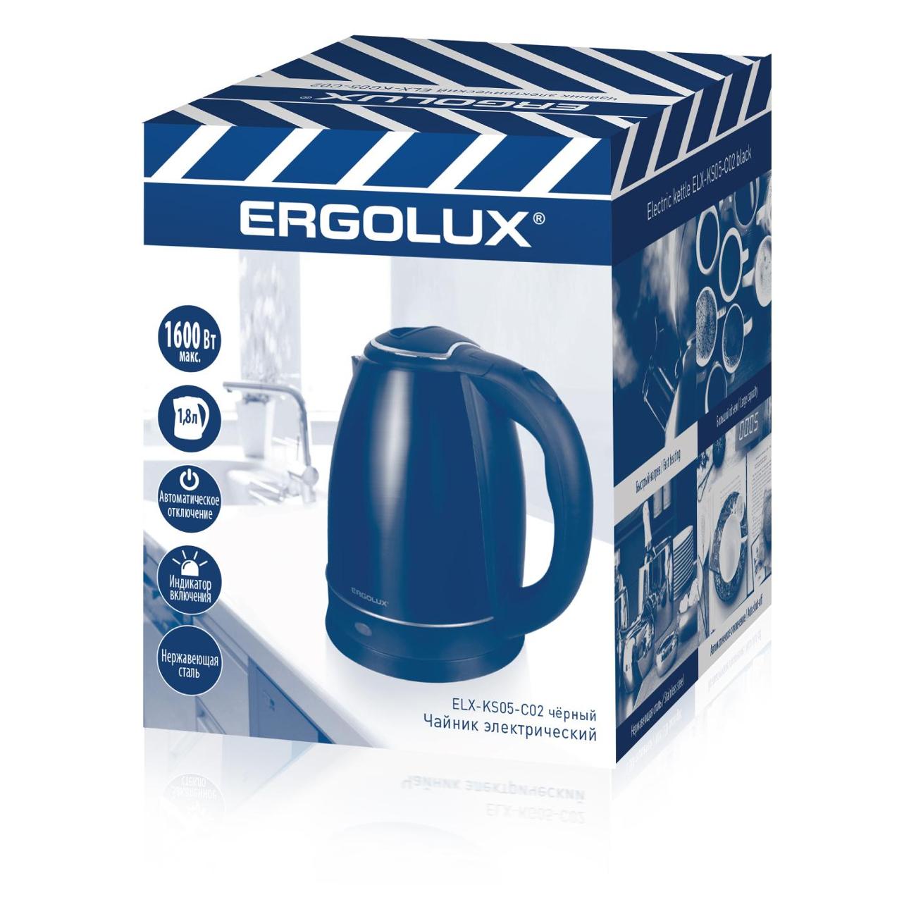 Вы можете купить Электрочайник Ergolux ELX-KS05-C02 в магазинах М.Видео по доступной цене. Электрочайник Ergolux ELX-KS05-C02: подробное описание, фото и отзывы реальных покупателей, характеристики, возможность скачать инструкции и подобрать аксессуары.