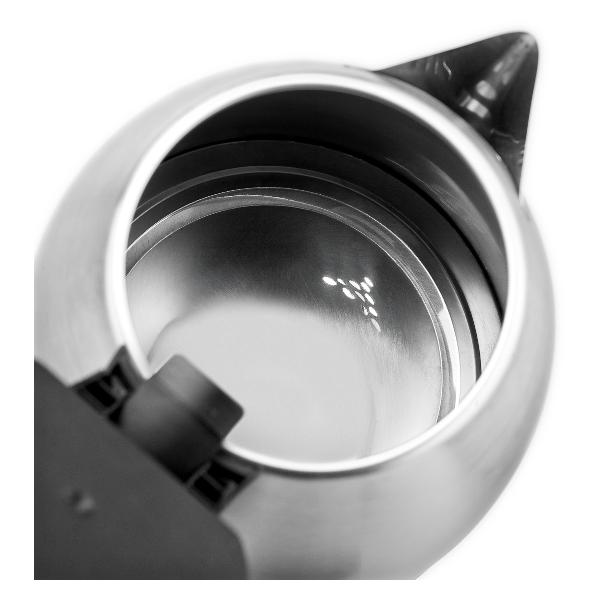 Чайник работает хорошо, тихо. Тот факт, что сделан весь из нержавейки вообще очень радует. Длины провода хватает, чтобы дотянуться до розетки, крышка откидывается, можно спокойно, не расплескивая, налить воды в чайник. Модель работает нормально, меня устраивает.