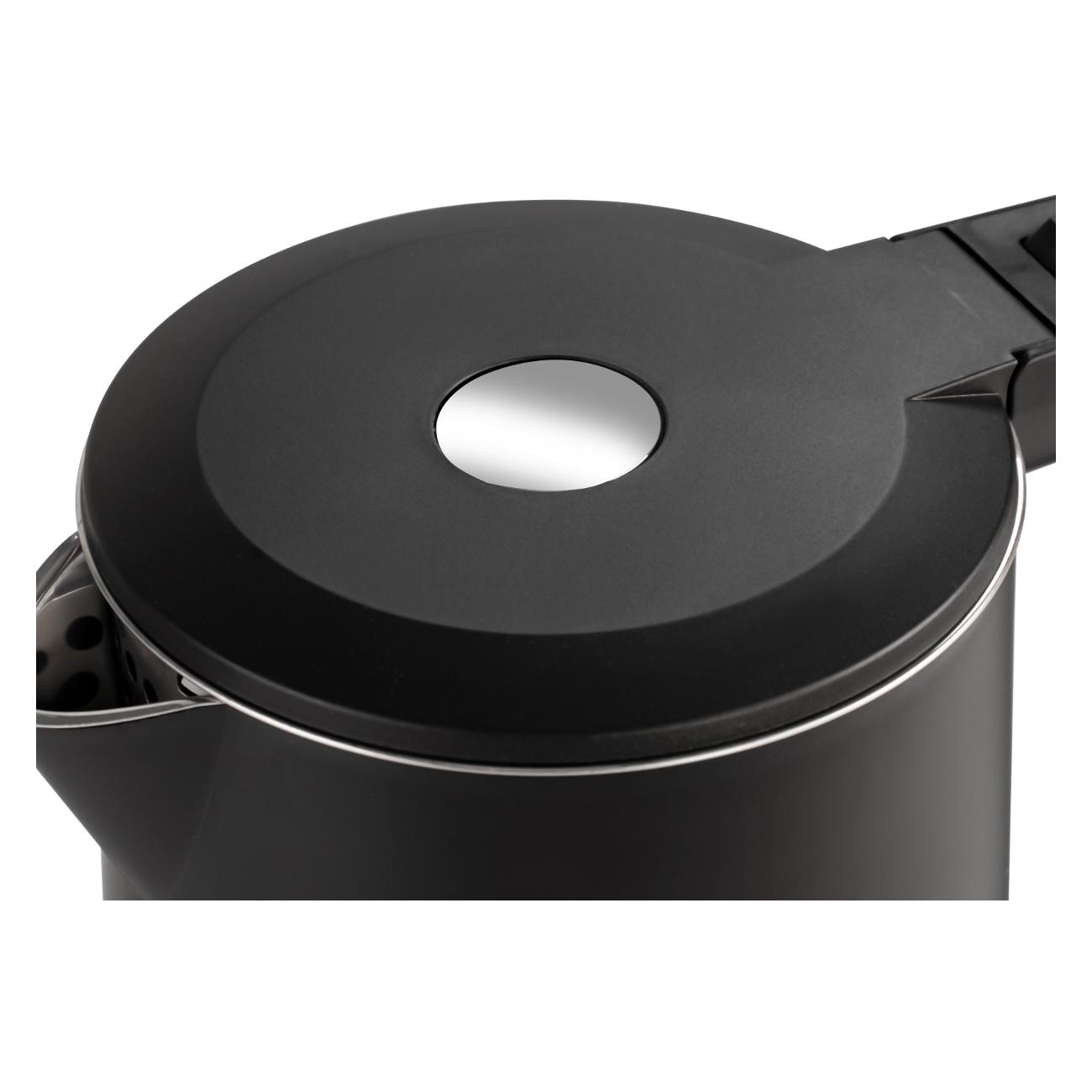Чайник отключается при закипании и отсутствии воды автоматически, снабжен световым индикатором включения. Мощность прибора составляет 2000 Вт, вес — 1,4 кг.