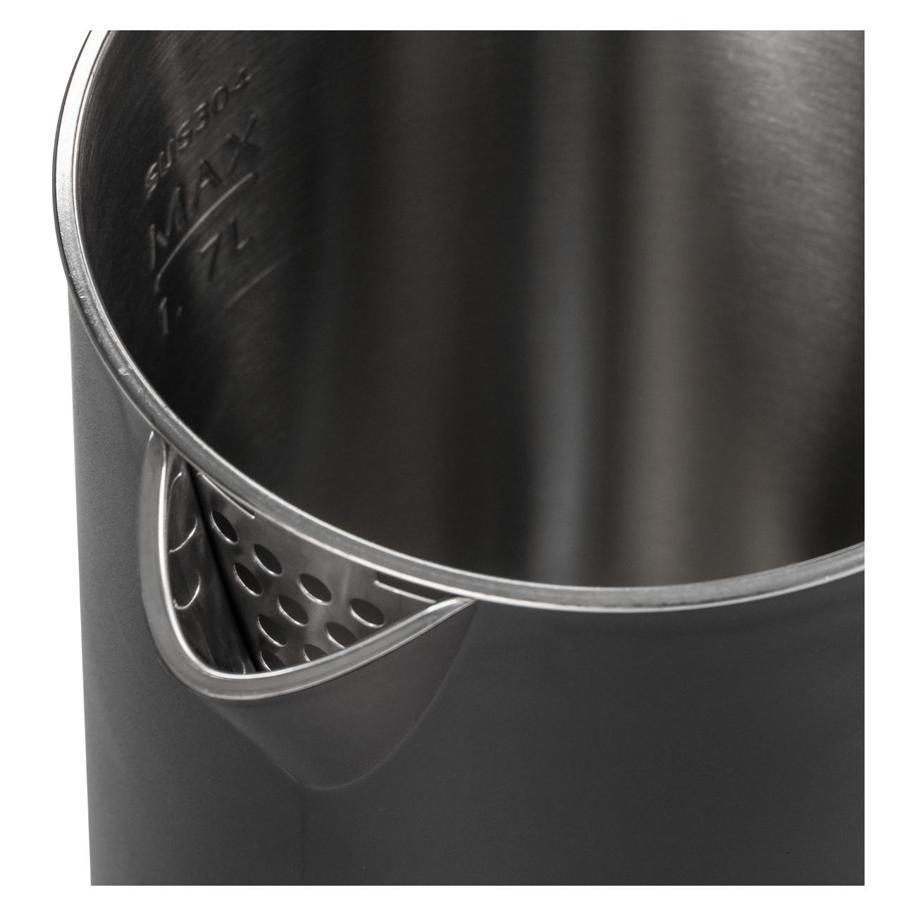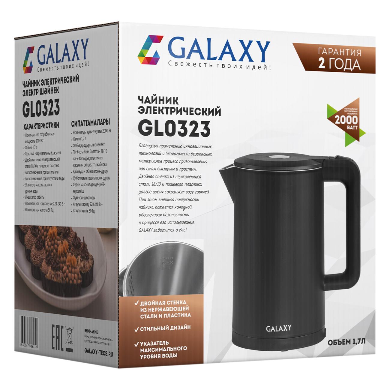 Электрочайник Galaxy GL0323 в черном цвете объемом 1,7 л снабжен механической системой управления, широким горлышком для облегчения наполнения. Корпус прибора изготовлен из пластика и нержавеющей стали, двойные стенки позволяют надолго сохранить температуру воды. Для очистки от накипи в носик встроен фильтр, скрытый нагревательный элемент не подвержен образованию известкового налета.