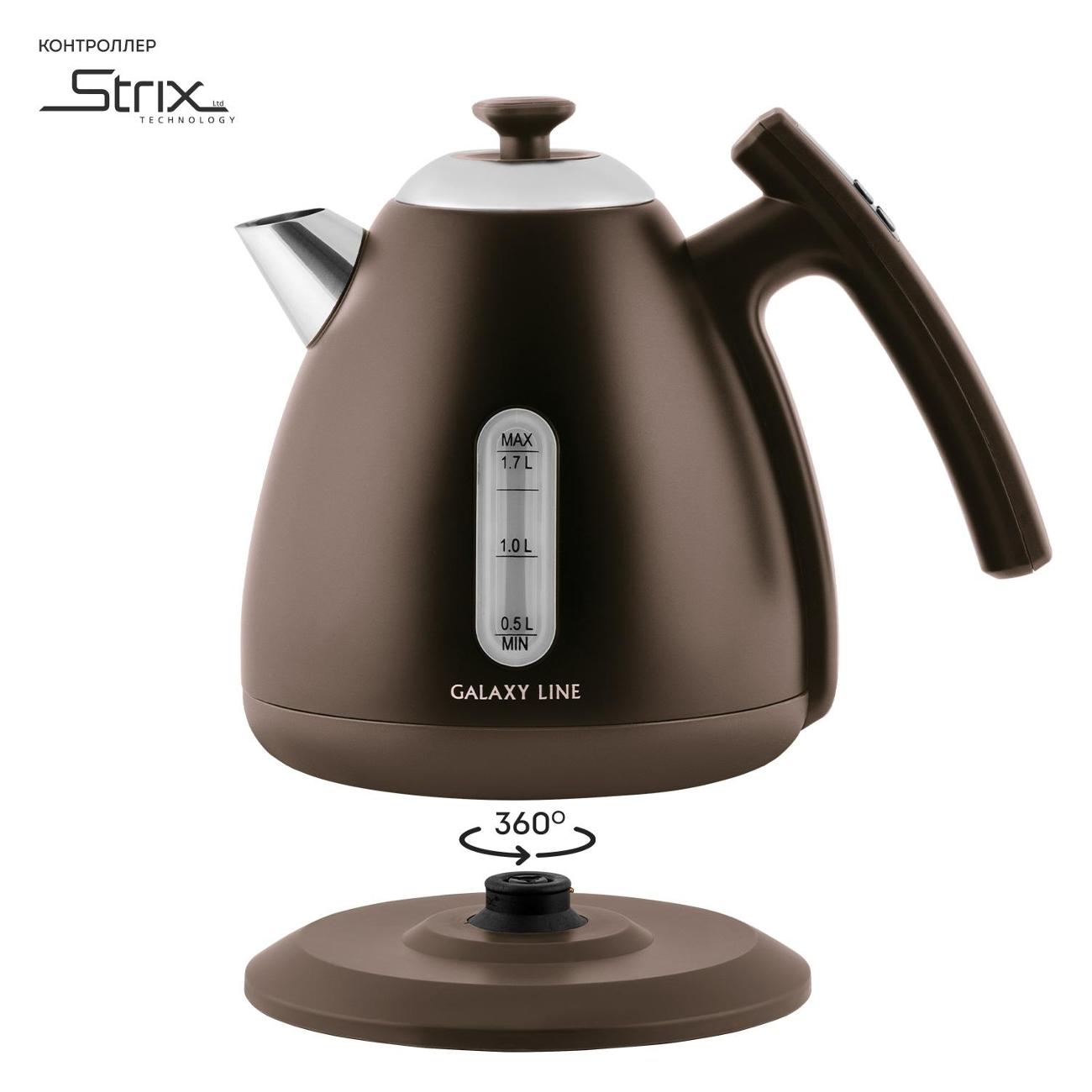 Электрочайник Galaxy Line GL0343, шоколадный привлекает внимание классической формой и удобной открытой ручкой — модель гармонично впишется во многие актуальные кухонные интерьеры, включая сканди и классику. Объем колбы — 1,7 л, мощность составляет 2200 Вт. Корпус выполнен из нержавеющей стали — устойчивого к коррозии и гигиеничного материала, который не повлияет на вкус и запах воды. Нагревательный элемент скрыт.