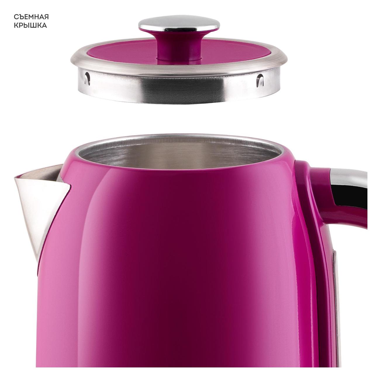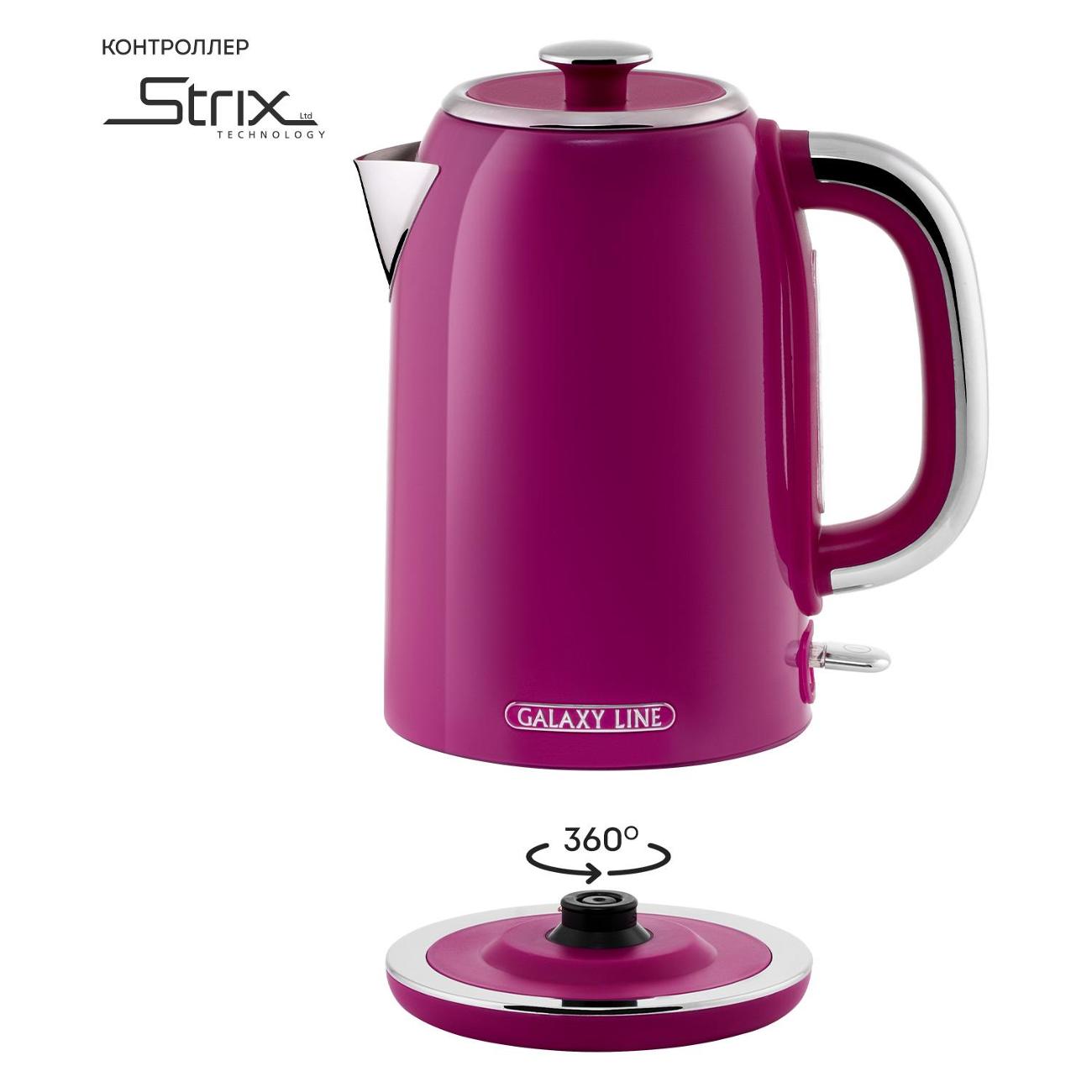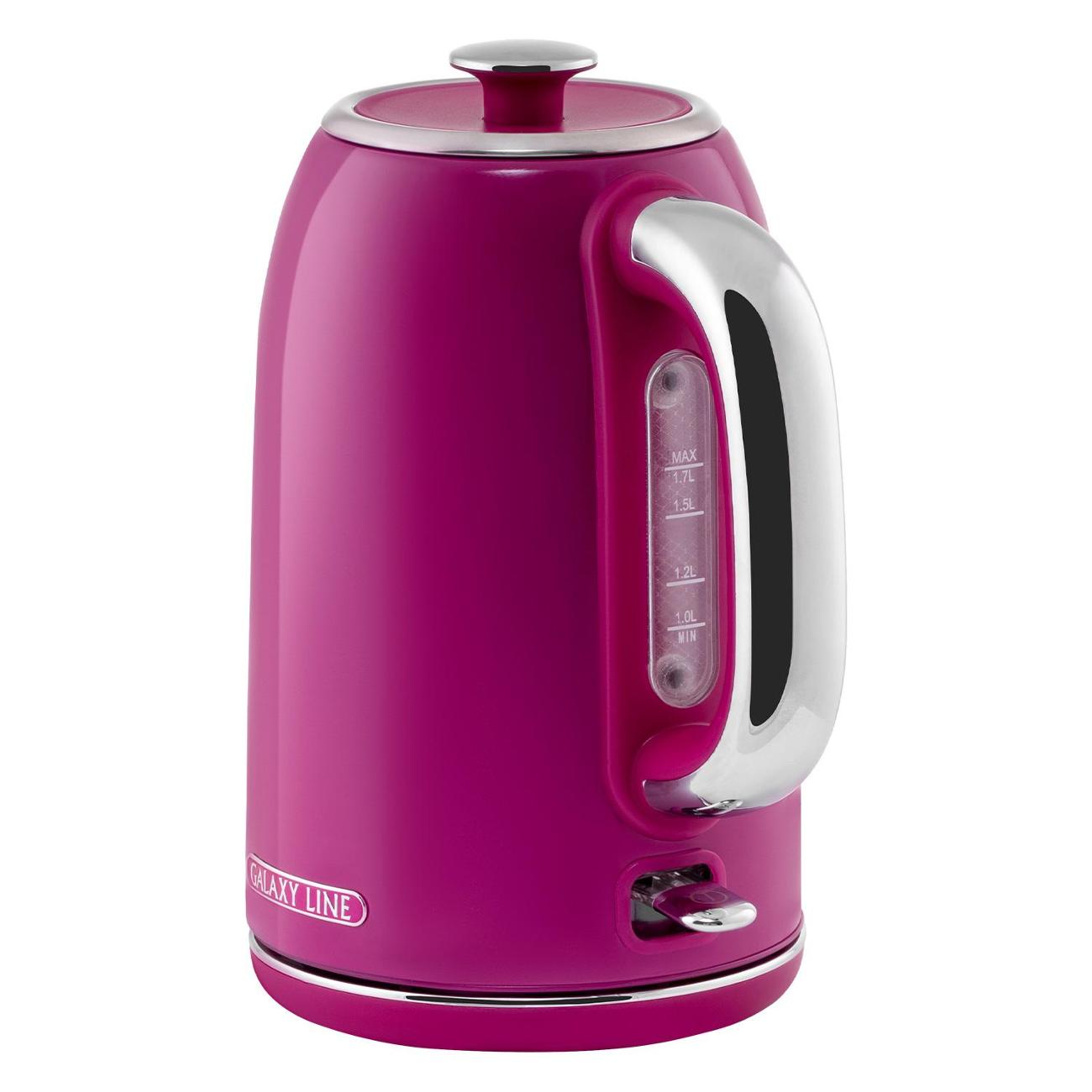 Электрочайник Galaxy Line GL0346, малиновый с серебристыми элементами — элегантная модель классической формы, которая станет украшением интерьера любой кухни. Объем колбы — 1,7 л, чего хватит на семью из пяти-семи человек, полностью съемная крышка и широкая горловина упрощают залив воды.