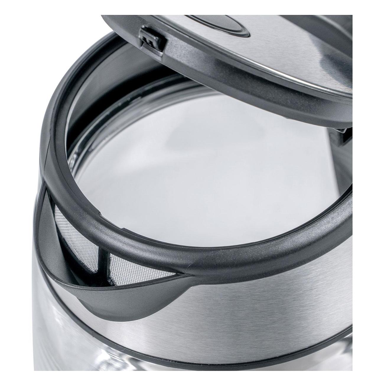 Электрочайник Galaxy Line GL0558 обладает корпусом, выполненным из термостойкого стекла. Встроенная светодиодная подсветка обеспечивает хорошую видимость в темное время суток. Объем резервуара равен 1,7 л. Удобная ручка не нагревается в процессе эксплуатации, что предотвращает появление ожогов. Крышка плотно фиксируется к корпусу. Широкий носик дает возможность аккуратно наливать воду в стакан. На корпус нанесена разметка уровня воды. Специальный фильтр уменьшает вероятность попадания накипи в напиток.