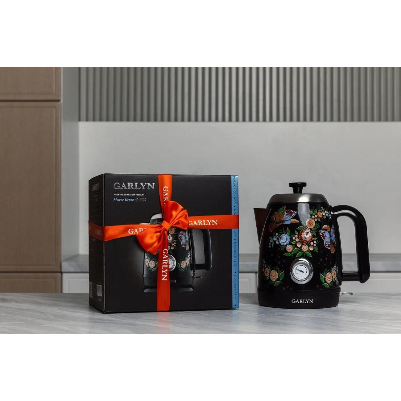 Вы можете купить Электрочайник Garlyn Flower Grace K-400 в магазинах М.Видео по доступной цене. Электрочайник Garlyn Flower Grace K-400: подробное описание, фото и отзывы реальных покупателей, характеристики, возможность скачать инструкции и подобрать аксессуары.