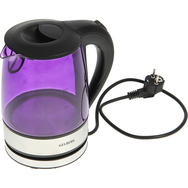 Электрочайник Gelberk GL-340 выполнен в черном корпусе из пластика и стали. Емкость для воды сделана из закаленного стекла. Во время нагрева включается синяя подсветка воды. Конструкция подставки позволяет вращать чайник на 360°, что позволяет быстро установить его на место с любой стороны. На боковую сторону нанесена шкала для отмеривания объема воды. Максимальный — 1,2 л. Мощность кипячения — 1500 Вт. Есть специальный фильтр, предотвращающий попадание накипи в чашки. Предусмотрена блокировка включения, если в чайнике меньше необходимого минимума воды. Отключение при закипании производится автоматически.
