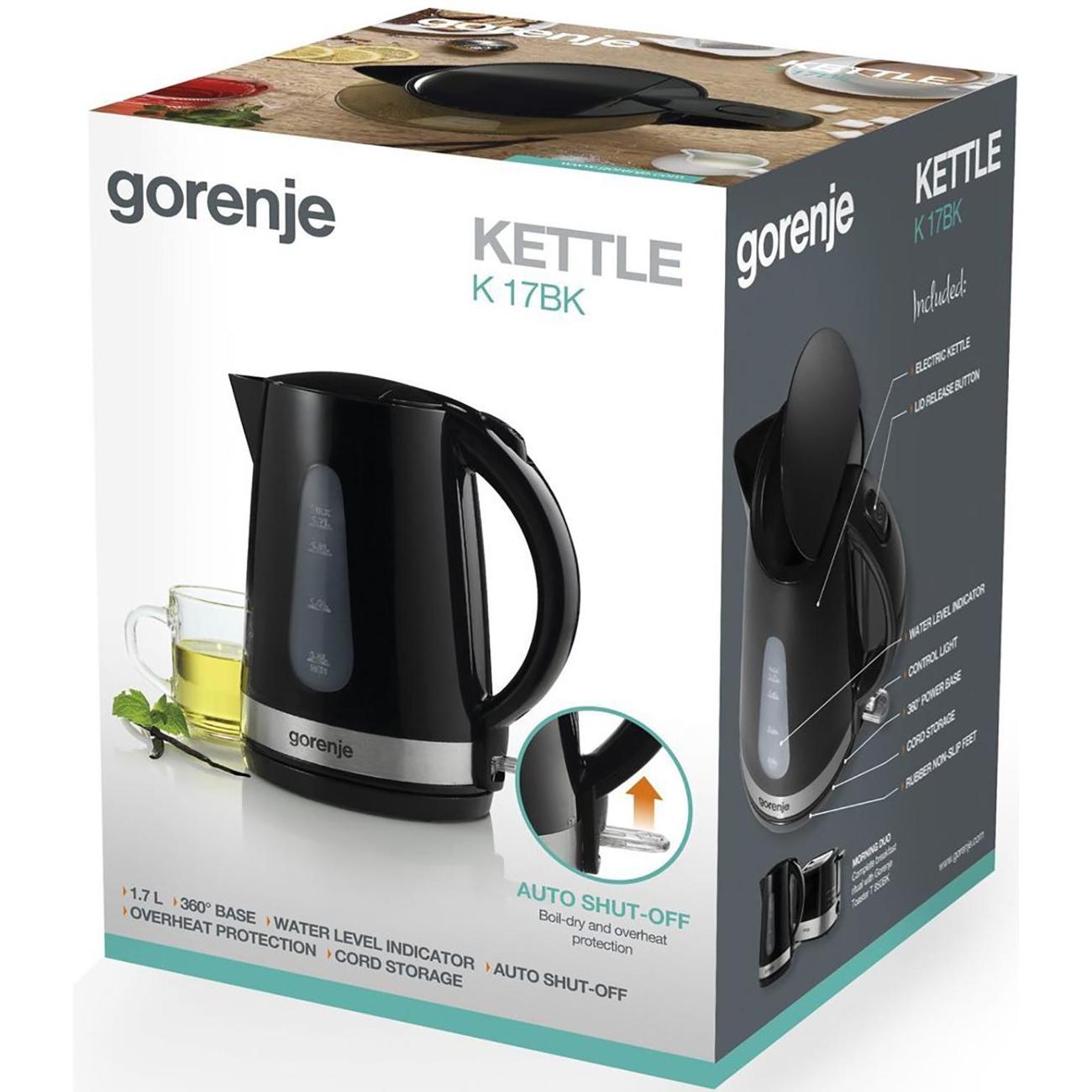 Вы можете купить Электрочайник Gorenje K17BK в магазинах М.Видео по доступной цене. Электрочайник Gorenje K17BK: подробное описание, фото и отзывы реальных покупателей, характеристики, возможность скачать инструкции и подобрать аксессуары.