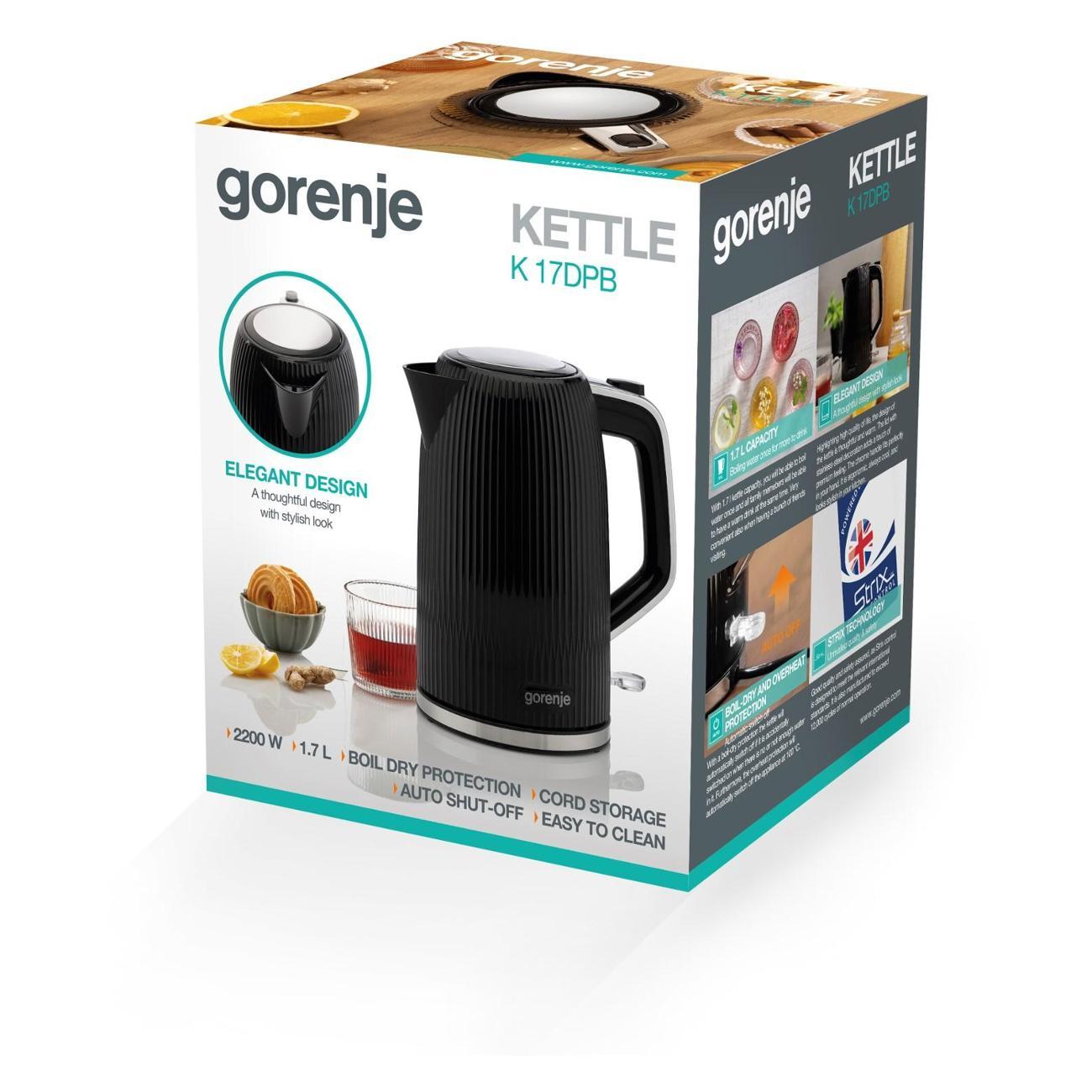 Вы можете купить Электрочайник Gorenje K17DPB в магазинах М.Видео по доступной цене. Электрочайник Gorenje K17DPB: подробное описание, фото и отзывы реальных покупателей, характеристики, возможность скачать инструкции и подобрать аксессуары.