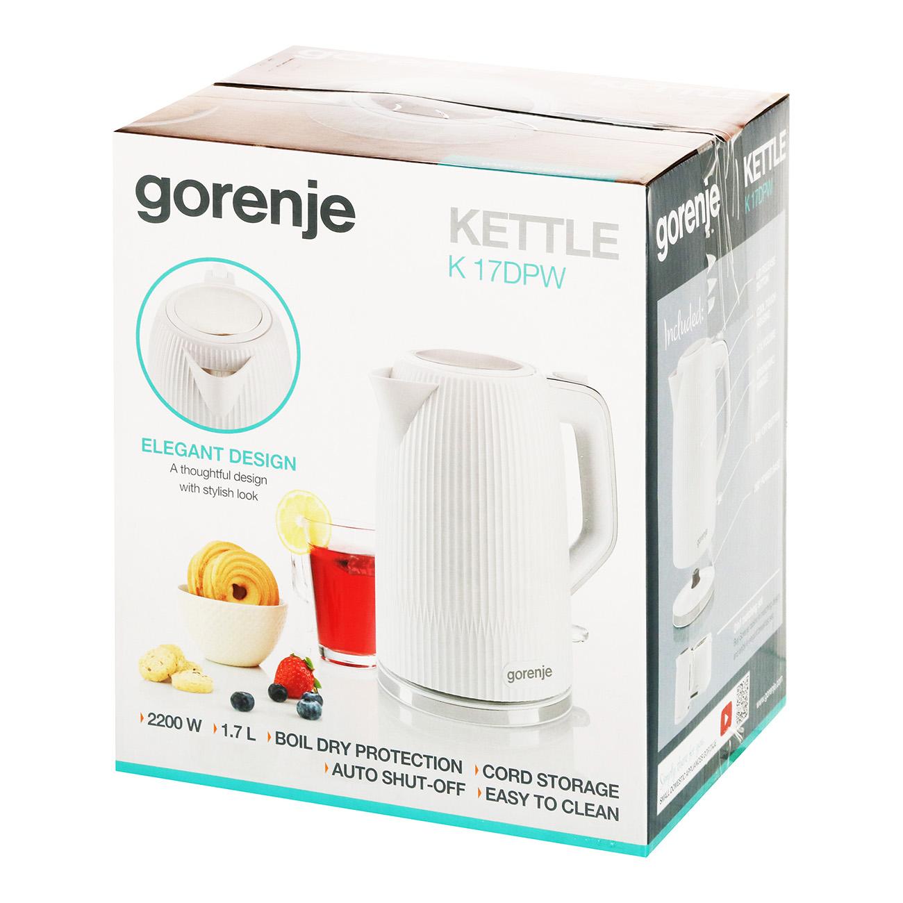 Вы можете купить Электрочайник Gorenje K17DPW в магазинах М.Видео по доступной цене. Электрочайник Gorenje K17DPW: подробное описание, фото и отзывы реальных покупателей, характеристики, возможность скачать инструкции и подобрать аксессуары.