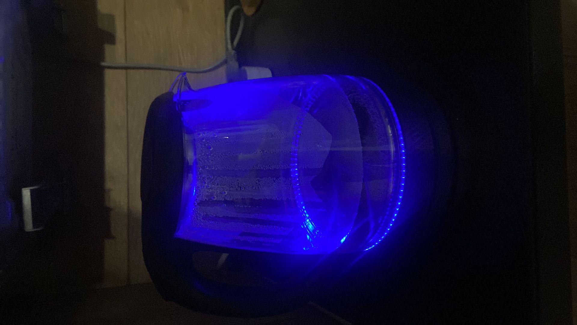 К внешнему виду претензий нет, есть фильтр, чайник на подставке стоит уверенно, воду заливать а чайник удобно, крышка открывается почти под 90 градусов. Есть светодиодная подсветка. Главное, основную свою функцию чайник выполняет