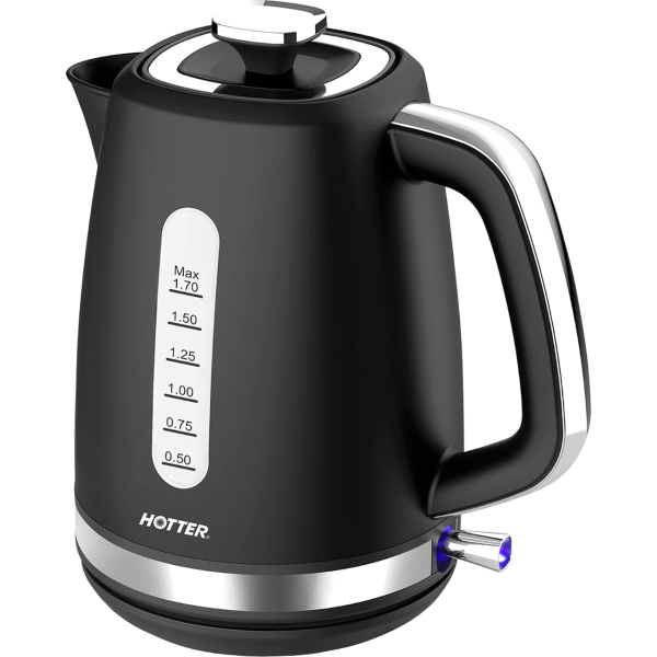 Hotter HX-55KB – стильный и удобный электрический чайник, объём которого составляет 1,7 л. Он пригодится, чтобы устроить чаепитие дома, в офисе или на даче.