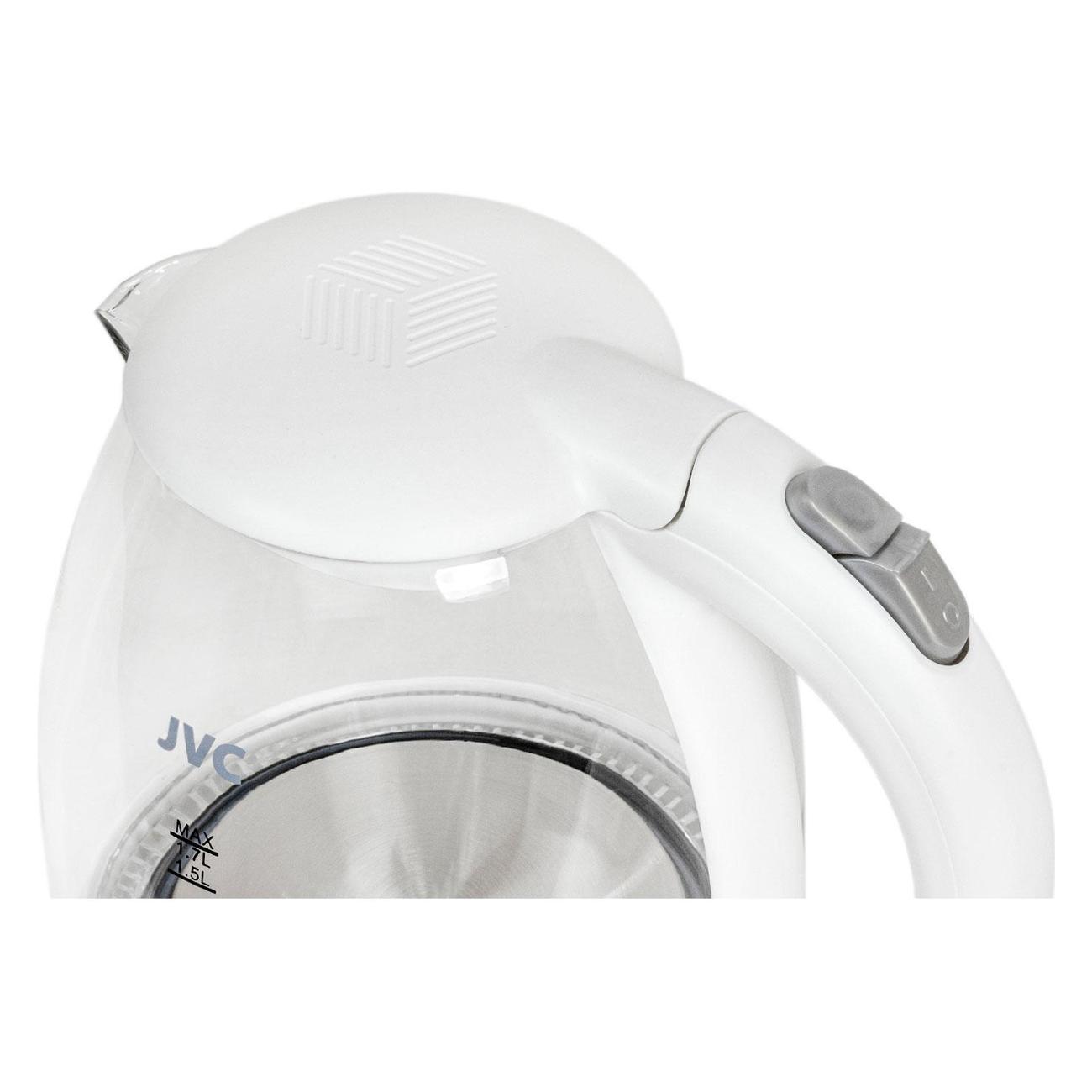 Электрочайник JVC JK-KE1514, белый, с управлением механического типа обладает весом 1,2 кг. Модель оснащается системами отключения при закипании и отсутствии воды, снятии с подставки. Применяется дисковый элемент нагревания. В устройстве присутствует отсек для кабеля питания. Корпус выполнен из пластика и стекла. Чайник оснащается встроенной системой подсветки.