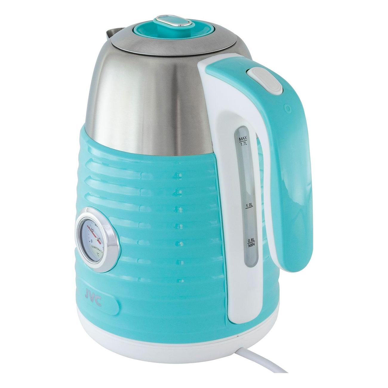Электрочайник JVC JK-KE1726 (мятный) — простой в использовании бытовой прибор. Высокая мощность устройства 2200 Вт позволяет нагревать воду до 100°C за короткий промежуток времени. Двойные внутренние стенки сделаны из нержавеющей стали, внешняя часть и ручка — пластиковые. Встроена индикация включения и уровня воды, датчик температуры.