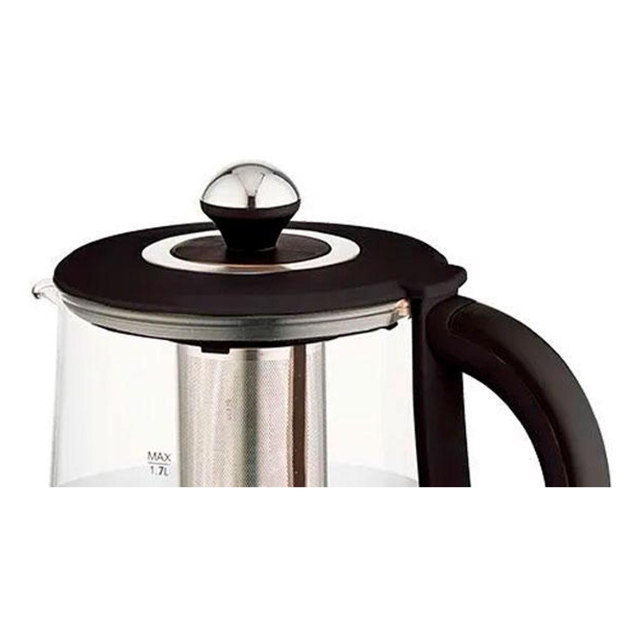 Электрочайник Kelli KL-1377, черный мощностью 2200 Вт позволяет не только кипятить воду, но и заваривать чай — для этого предусмотрено ситечко, изготовленной из нержавеющей стали. Объем резервуара — 1,7 л, что позволит приготовить напиток сразу для нескольких человек. Колба выполнена из термостойкого стекла — прочного и гигиеничного материала, который не придаст воде посторонний запах или привкус.