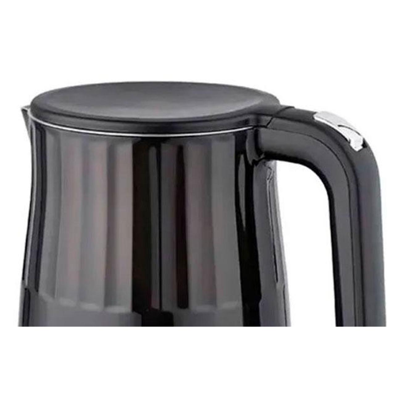 Электрочайник Kelli KL-1377 в стальном корпусе дополнен стеклянной колбой объемом 1,8 л и цифровым экраном. Передняя панель оснащена индикацией включения, температуры и уровня воды. Устройство управляется при помощи электронной панели с сенсорными кнопками. Предусмотрено автоотключение при закипании и отсутствии воды. Модель мощностью 2200 Вт нагревается до 70–100°С и поддерживает четыре режима работы. За нагрев отвечает дисковый элемент, внутри находится фильтр от накипи.