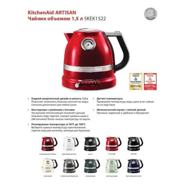 Вы можете купить Электрочайник KitchenAid Artisan 5KEK1522E в магазинах М.Видео по доступной цене. Электрочайник KitchenAid Artisan 5KEK1522E: подробное описание, фото и отзывы реальных покупателей, характеристики, возможность скачать инструкции и подобрать аксессуары.