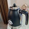 Пользуюсь пору дней и чайник уже радует. Кипятит быстро полный объём у меня за 4–5 минут. Индикатор горит мягко, видно из любой точки. Стальной кувшин не пахнет, воду не окрашивает, внутри стоит фильтр — налёт перестал попадать в кружку. Кнопка включения нажимается одним пальцем, вслепую тоже удобно. Съёмная крышка, открывается одной рукой, наливать и мыть легко. На базе с поворотом ставлю с любого угла. Шкала уровня воды наружная, отметил себе риски под чайник и термокружку. Термометр оказался не игрушкой: по утрам грею до 80–85 для зелёного чая, вкус стал чище, горечь пропала. Автоотключение срабатывает чётко, при снятии с подставки тоже не чудит. Блокировка без воды спасла меня на спехе, когда щёлкнул пустой — просто не запустился. Шнур уходит в отсек, ничего не болтается на столешнице. Цвет живой, на кухне смотрится как игрушка, гости сразу спрашивают. Из мелочей — закрытый нагревательный элемент, дно ровное, осадок убираю салфеткой за минуту. За свои деньги получил понятный инструмент — без лишних режимов, но с нужными мелочами!
