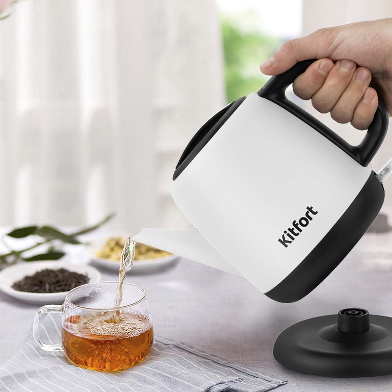 Компактный электрочайник Kitfort КТ-6112 подойдёт для использования дома, в путешествии или на работе. Он запросто поместится в дорожный рюкзак или сумку. Мощность нагревательного элемента 1630 Вт – оптимальный показатель, который позволит избежать перегрузки при использовании устройства в незнакомом месте.
