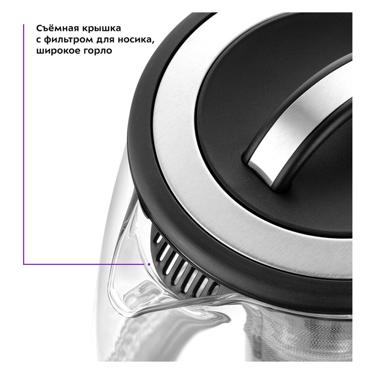 Чай можно заваривать непосредственно в самом чайнике благодаря внутреннему съемному фильтру, размещенному внутри колбы.