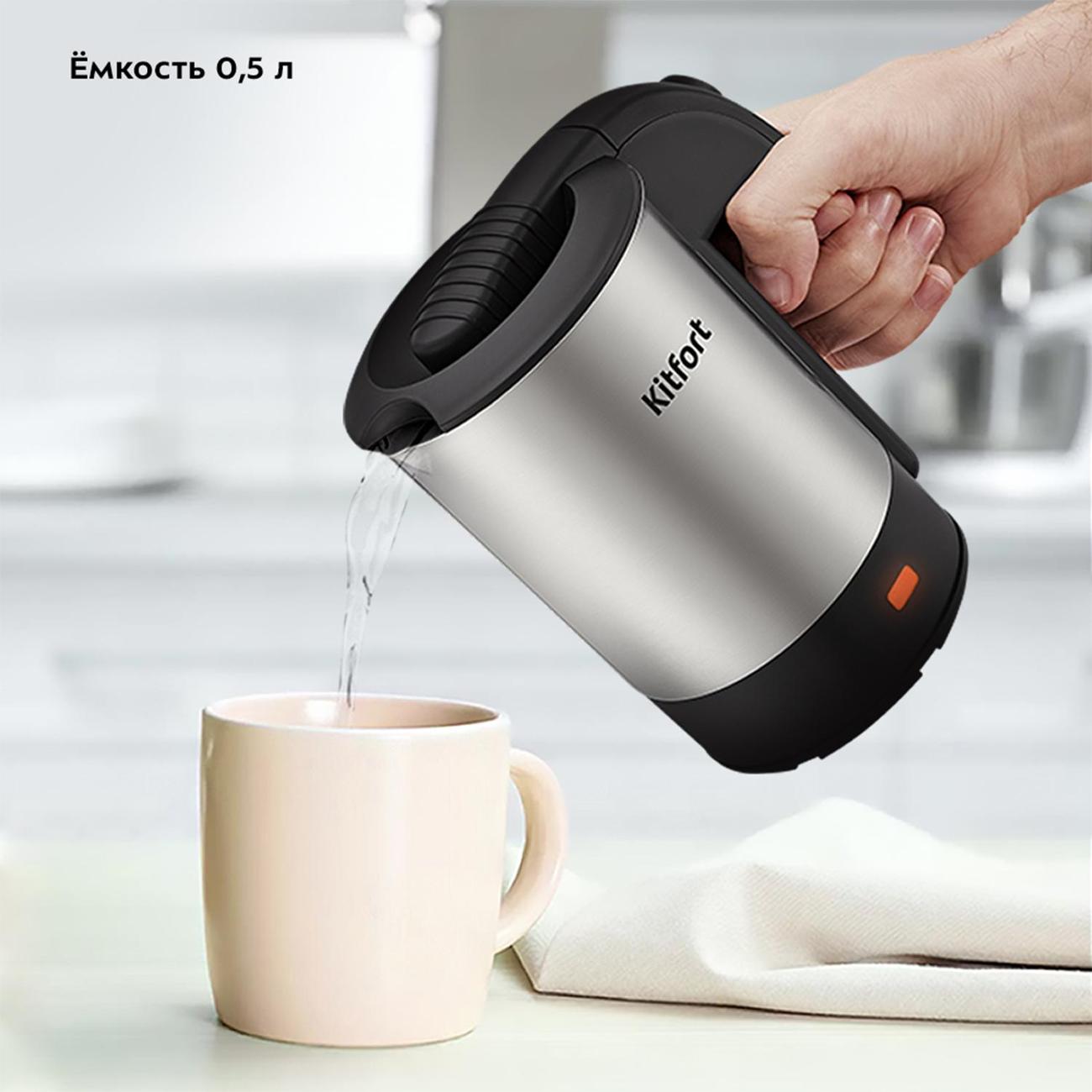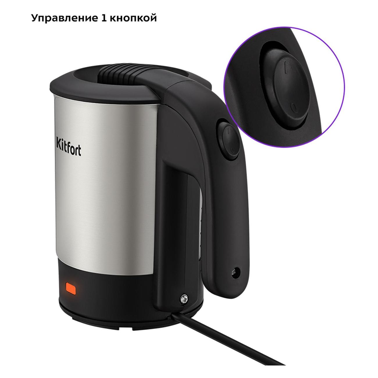 Электрочайник Kitfort КТ-6190 обладает механическим типом управления. Вмещает в себя до 0,5 л воды. Устройство снабжено одним режимом нагревания. Корпус прибора изготовлен из металла и прочного пластика. В конструкции присутствует съемная крышка, которая облегчает доступ во время мытья. Модель дополнительно оборудована подсветкой, фильтром от накипи и индикацией включения. Оснащена функцией поддержания температуры, отключения при закипании и снятии. Изделие произведено в Китае. Вес — 0,429 кг.