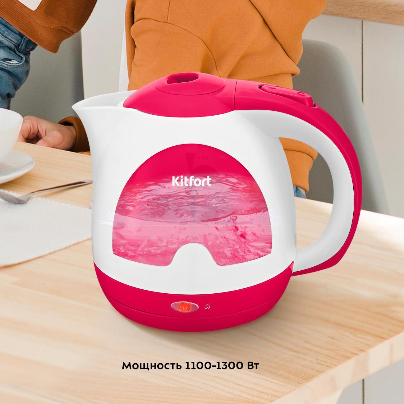 Электрочайник Kitfort KT-6607-1 — компактная модель в корпусе из высококачественного пластика белого и розового цветов. Колба объемом 1 л выполнена из нержавеющей стали — прочного материала, который не деформируется, не меняет вкус и запах воды.