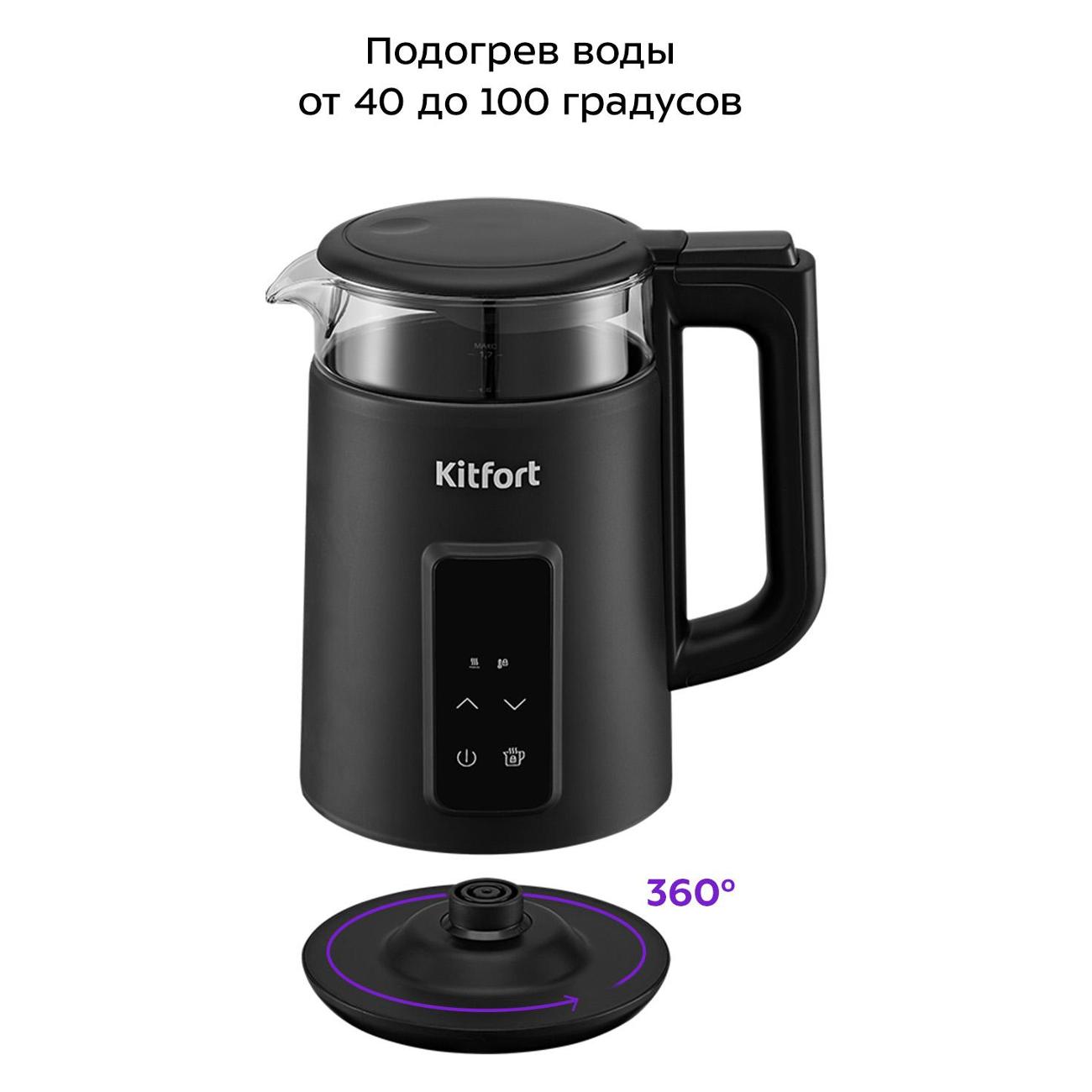 Чайник оказался лучше чем ожидалось. выглядит стильно, пластик неплохой (не бош конечно, но за эти норм). чайник имеет температурную электронную шкалу , можно выбрать 7 режимов подогрева (от 40 до 100 градусов). включается кнопкой на сенсорной панели, где можно выбрать режим. оказался очень тихий. внутри чайник стеклянный.