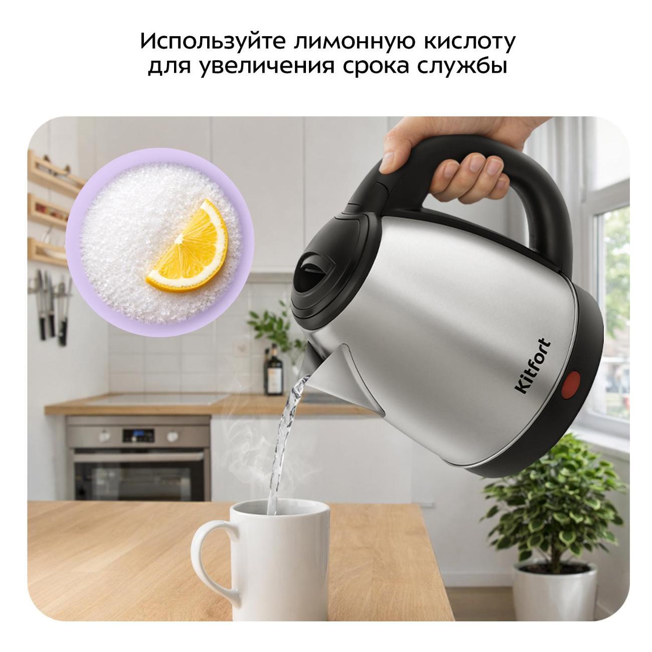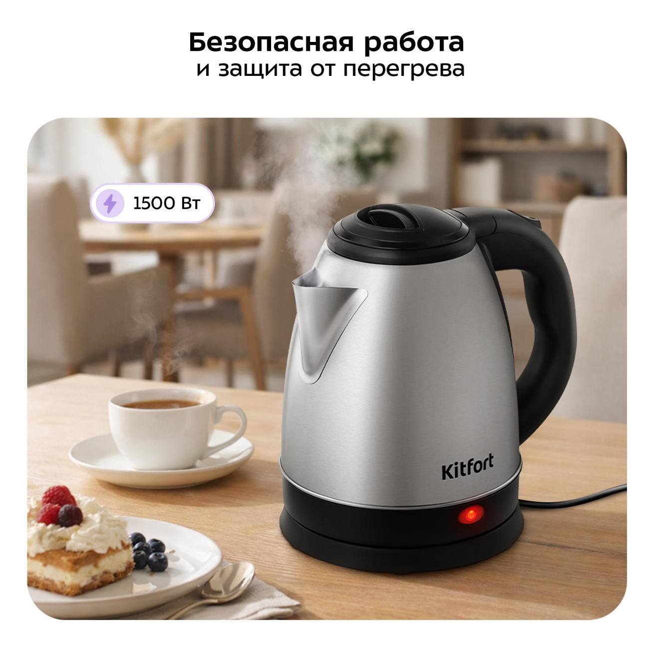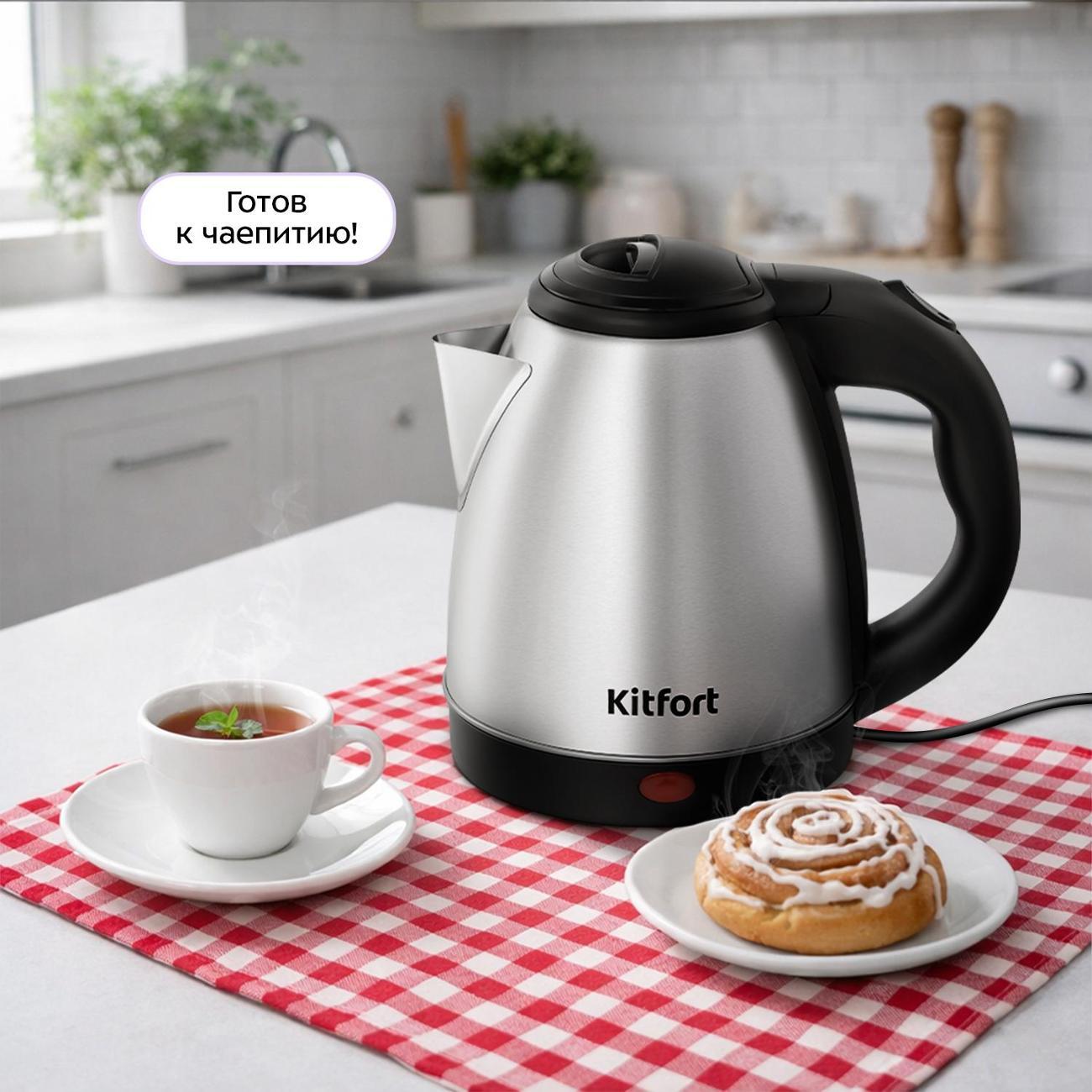 электрочайника Kitfort КТ-8762. Считаю я сделал правильный выбор. Компактный размер, легкий, выполнен из нержавейки, быстрое закипание воды, в общем чайником я доволен. Недостатков у чайника я не заметил . Электрочайник однозначно рекомендую к покупке! Спасибо фирме Kitfort за недорогой чайник, а магазину М-Видео за скидки !