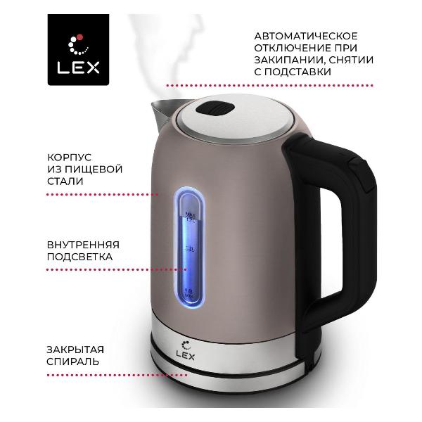 Вы можете купить Электрочайник LEX LX30018-3 в магазинах М.Видео по доступной цене. Электрочайник LEX LX30018-3: подробное описание, фото и отзывы реальных покупателей, характеристики, возможность скачать инструкции и подобрать аксессуары.
