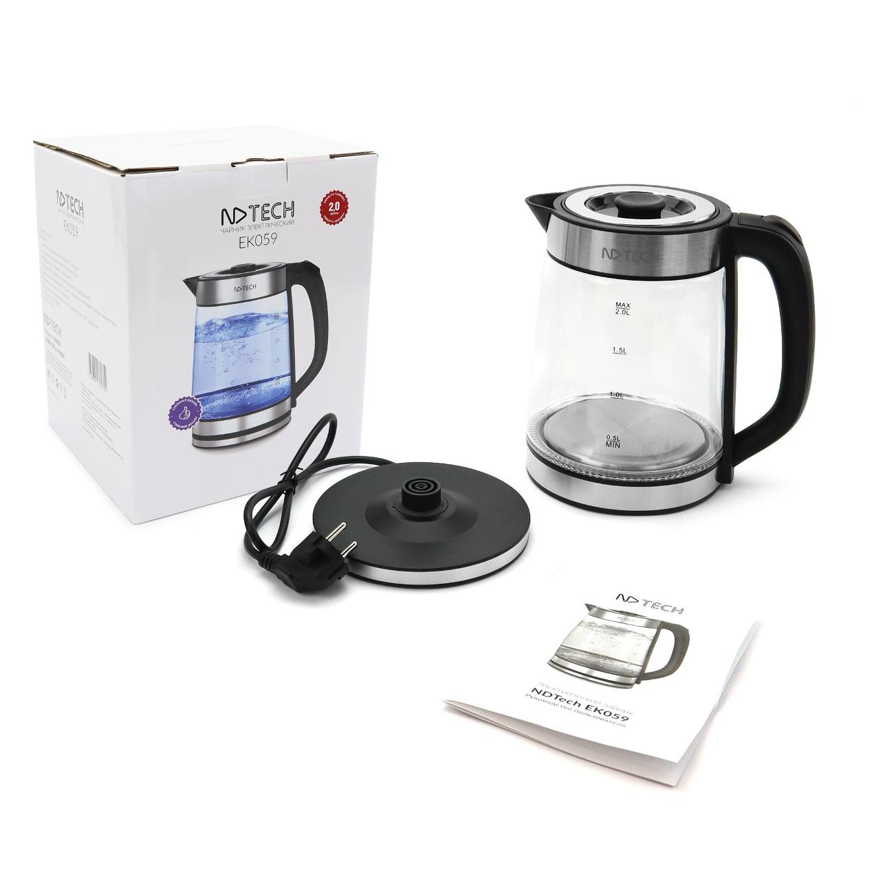 Электрочайник NDTech EK059 обладает объемом 2 л, что делает его удобным выбором для большой семьи или офиса.