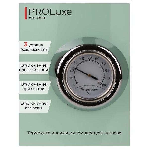 Вы можете купить Электрочайник PROLuxe PL-WKGRN01 в магазинах М.Видео по доступной цене. Электрочайник PROLuxe PL-WKGRN01: подробное описание, фото и отзывы реальных покупателей, характеристики, возможность скачать инструкции и подобрать аксессуары.