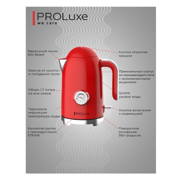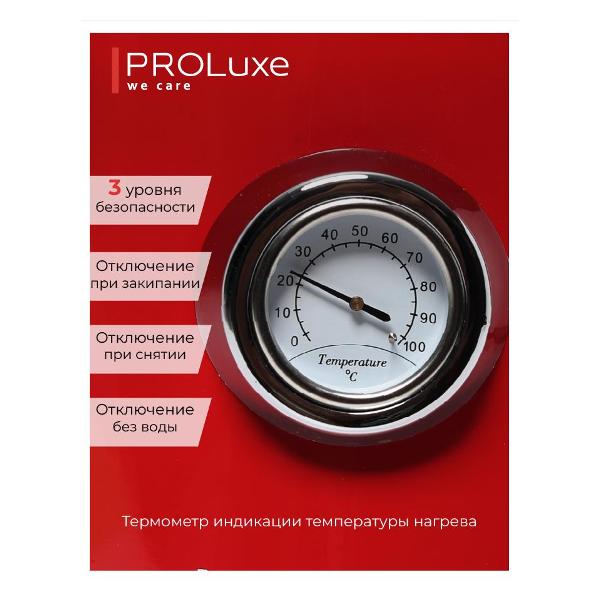 Вы можете купить Электрочайник PROLuxe PL-WKRED01 в магазинах М.Видео по доступной цене. Электрочайник PROLuxe PL-WKRED01: подробное описание, фото и отзывы реальных покупателей, характеристики, возможность скачать инструкции и подобрать аксессуары.