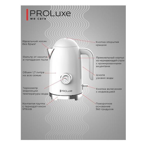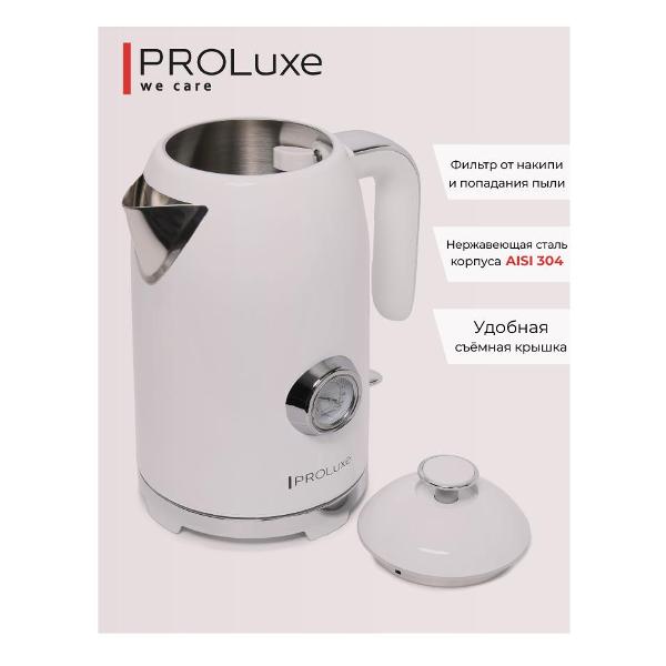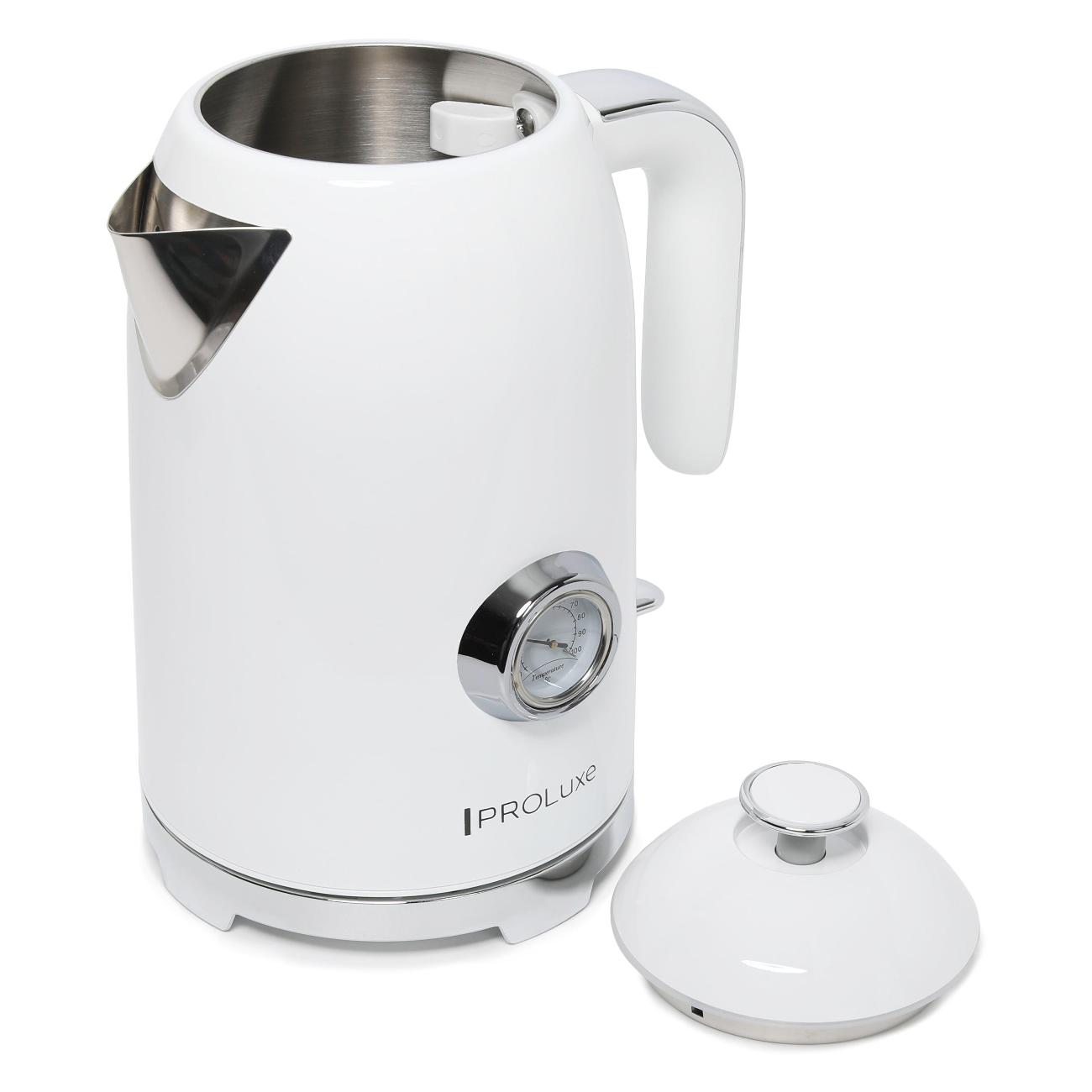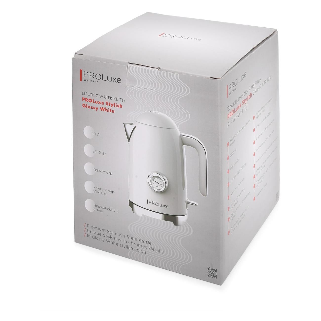 Вы можете купить Электрочайник PROLuxe PL-WKWHT01 в магазинах М.Видео по доступной цене. Электрочайник PROLuxe PL-WKWHT01: подробное описание, фото и отзывы реальных покупателей, характеристики, возможность скачать инструкции и подобрать аксессуары.