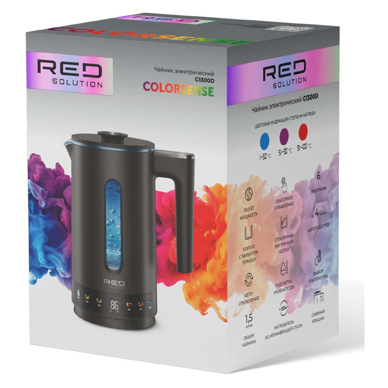 Вы можете купить Электрочайник RED SOLUTION COLORSENSE G1300D в магазинах М.Видео по доступной цене. Электрочайник RED SOLUTION COLORSENSE G1300D: подробное описание, фото и отзывы реальных покупателей, характеристики, возможность скачать инструкции и подобрать аксессуары.