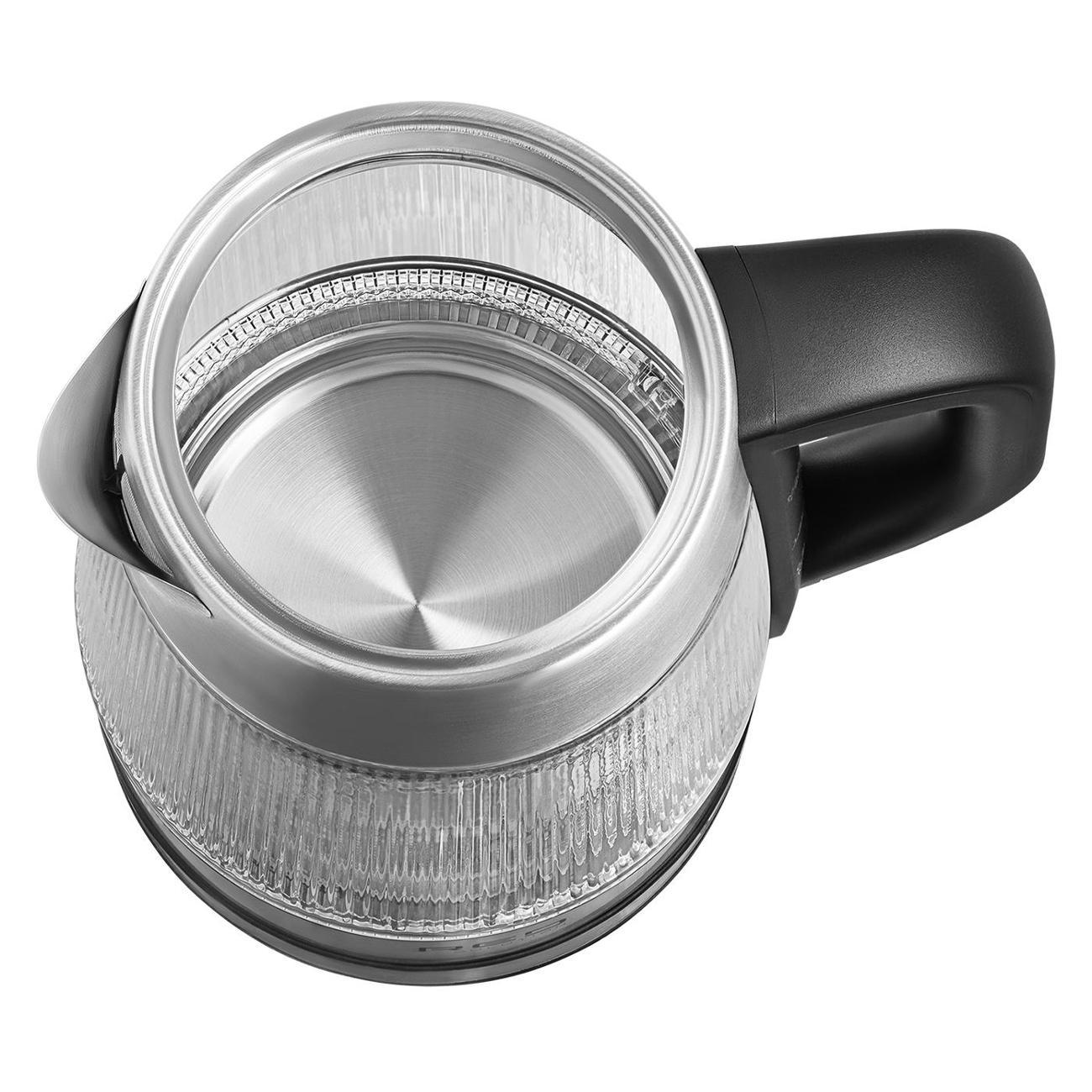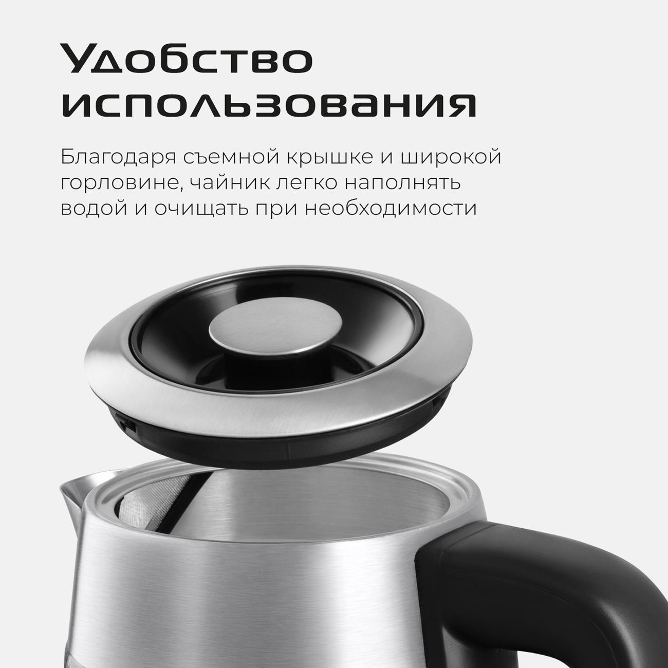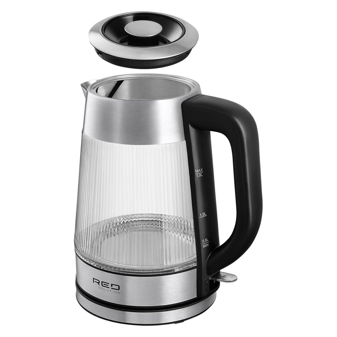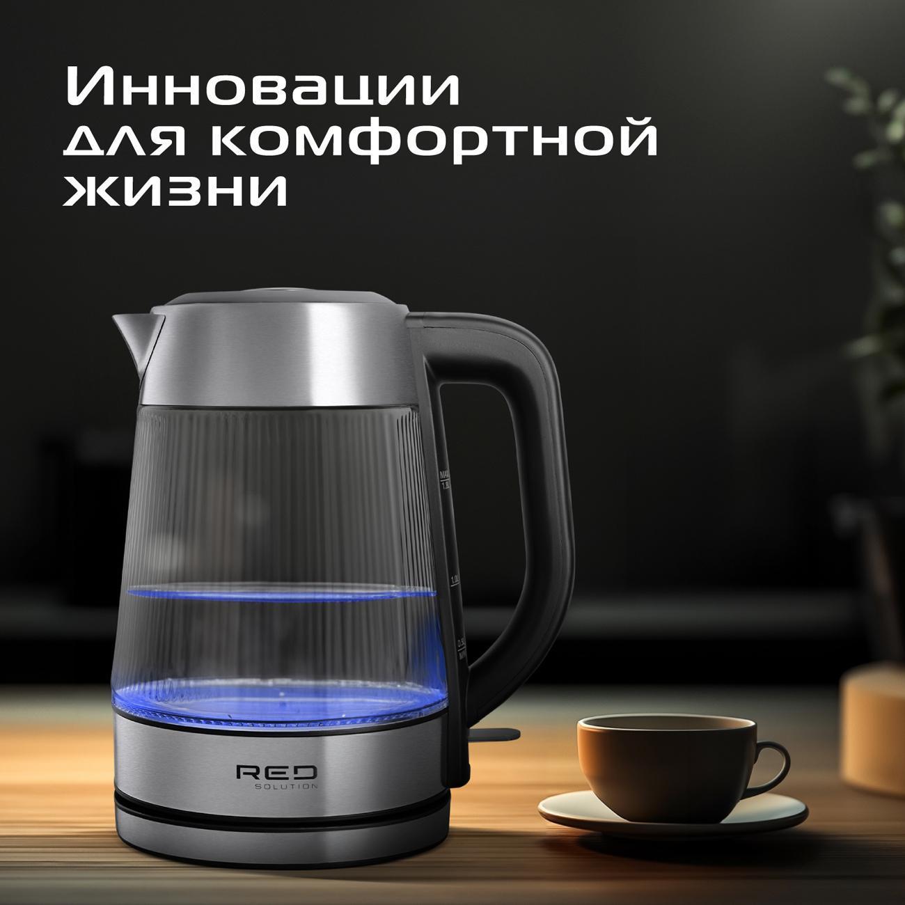 Искала чайник со съемной крышкой, потому что надоело их менять из-за того, что крепление крышки плавится от горячего пара. И этот - идеальный вариант! К тому же, от любимого бренда. Пополнил мою семью техники от РЭД. Стеклянный корпус особенно хорош за счет граней. Смотрится ну очень стильно, кухню преобразил, постоянно им любуюсь) К тому же, это очень удобно - видеть уровень и степень чистоты воды в чайнике. Это еще и хороший индикатор для фильтра. Подсветка вокруг диска яркая, сине-голубая. Уровень шума обычный, не раздражающий. Чайник произвел впечатление как очень надежный и крепкий. Ежедневно радует мою семью. Однозначно лучший в своём ценовом сегменте. К покупке рекомендую!