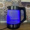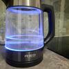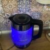 Отличный чайник, смотрится стильно, не шумный, вода закипает быстро, отсутствует запах дешевого пластика.Есть съёмное ситечко от накипи, удобно держать в руке, струя льется ровно, вода не разбрызгивается, крышка поднимается высоко, мыть удобно рука пролазит. Оригинальная синяя подсветка радует глаз. Покупкой довольна, рекомендую