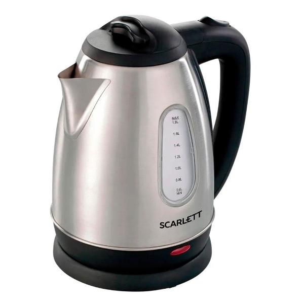 Электрочайник Scarlett SC-EK 21 S 20 обладает мощностью 1600 Вт, поэтому полный резервуар (объем — 1,8 л) закипает за считанные минуты. Для подключения к сети используется кабель длиной 70 см. Световой индикатор показывает, что устройство подключено к сети. Встроенное окошко снабжено мерной шкалой, по которой удобно отслеживать уровень воды.