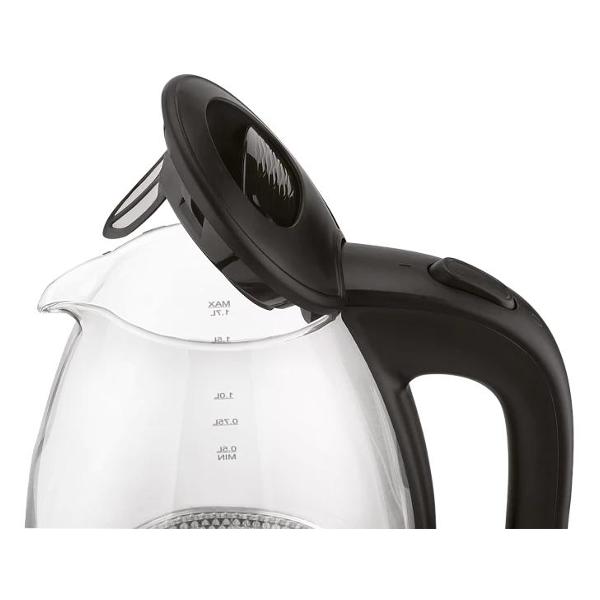 Для безопасной работы и большого эксплуатационного срока предусмотрена система Safe Work — защищает от включения при недостаточной заполненности чайника. Потребляемая мощность модели — 2200 Вт. Подключение к сети — через 0,7-метровый кабель. Емкость изготовлена из прозрачного, прочного стекла Crystal Pro — позволяет сохранить максимум полезных свойств воды и визуально оценивать ее уровень. При закипании активируется автоматическое отключение. Размеры электрочайника — 23,6х21,5х15,7 см, вес — 1,1 кг.