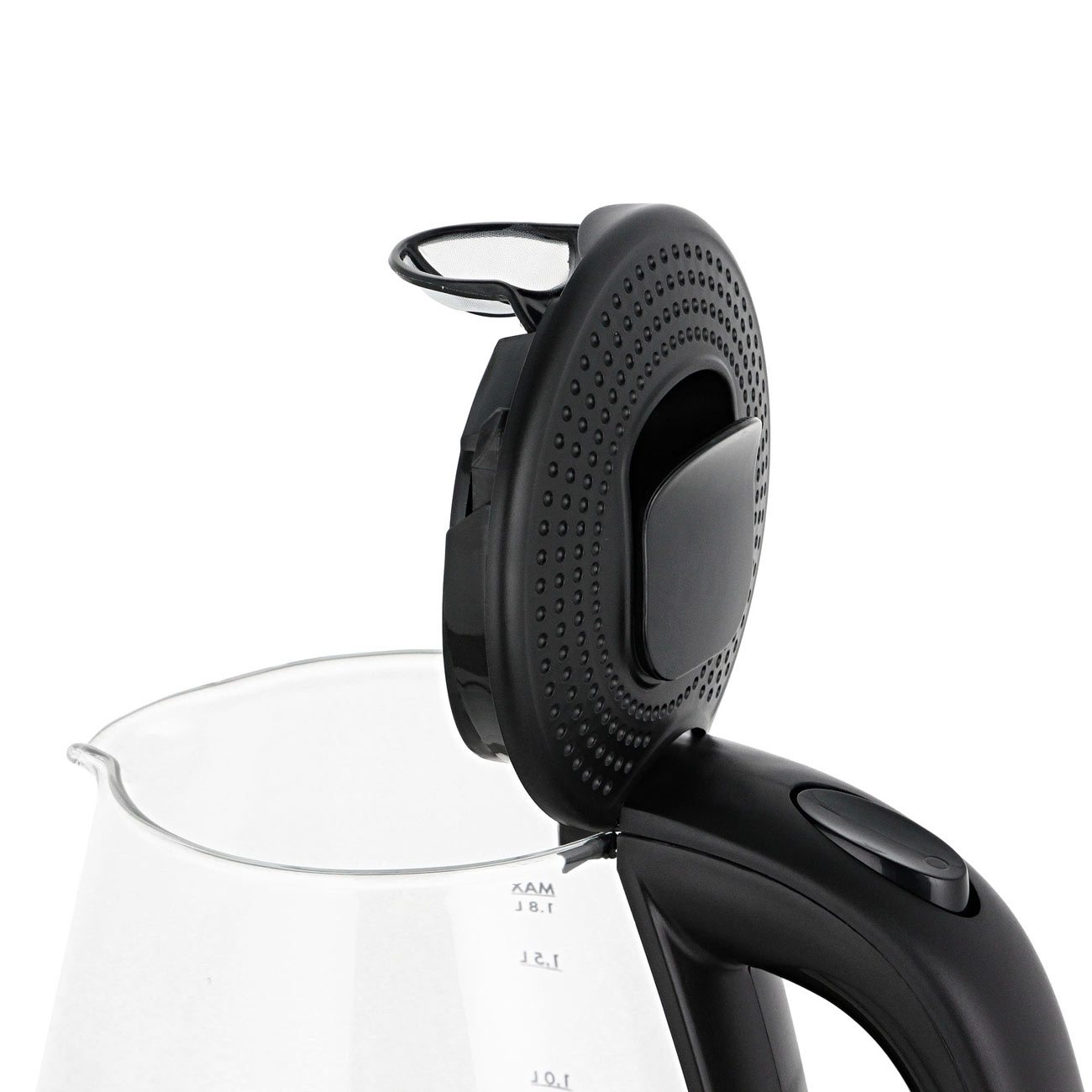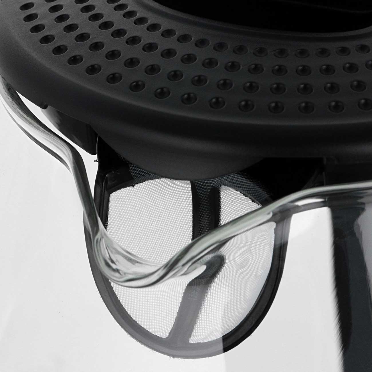 Точно рассчитать количество «порций» поможет нанесённая на колбу мерная шкала. Резервуар изготовлен из закалённого стекла, которому не страшны высокие температуры и несильные удары – царапин не останется. Барьером для частичек накипи служит нейлоновый фильтр, он легко снимается для очистки. Устройство можно ставить на подставку в любом положении. Машинально нажали на кнопку включения, но забыли долить воду? Чайник не «сгорит», так как сработает система защиты. Автоматическое отключение происходит и при закипании.